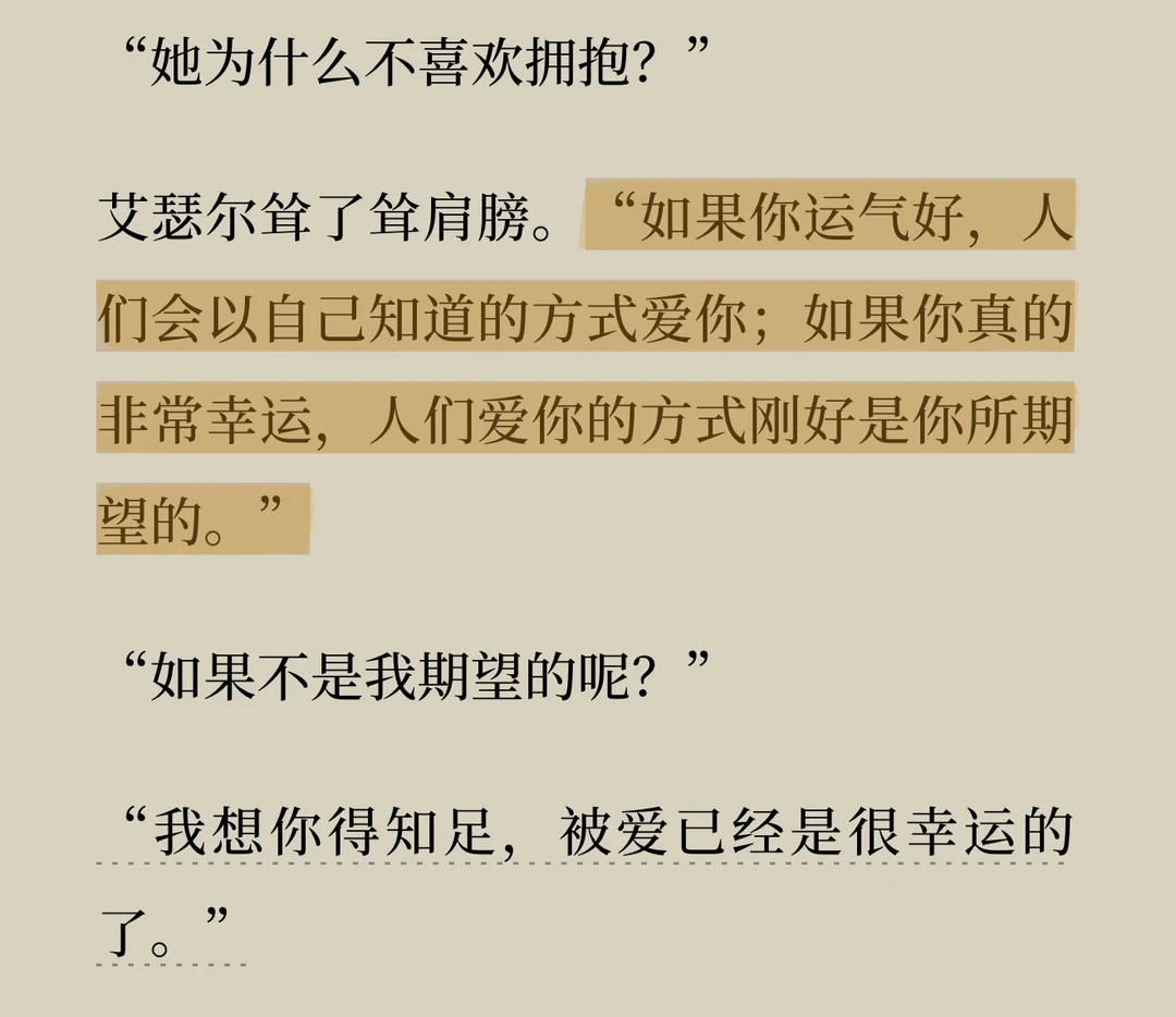 “如果你运气好,人们会以自己知道的方式爱你;如果你真的非常幸运,人们爱你的方式刚好是你所期望的。”(这句话看的掉眼泪了不争气啊)