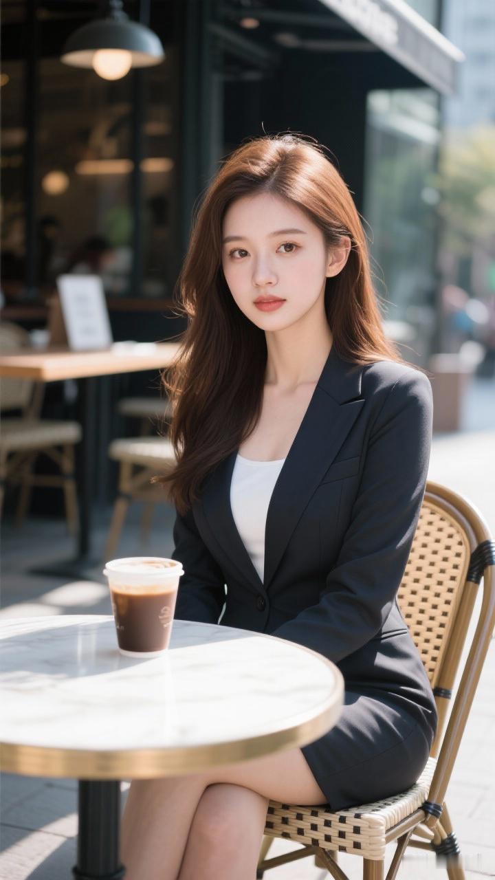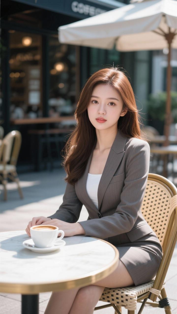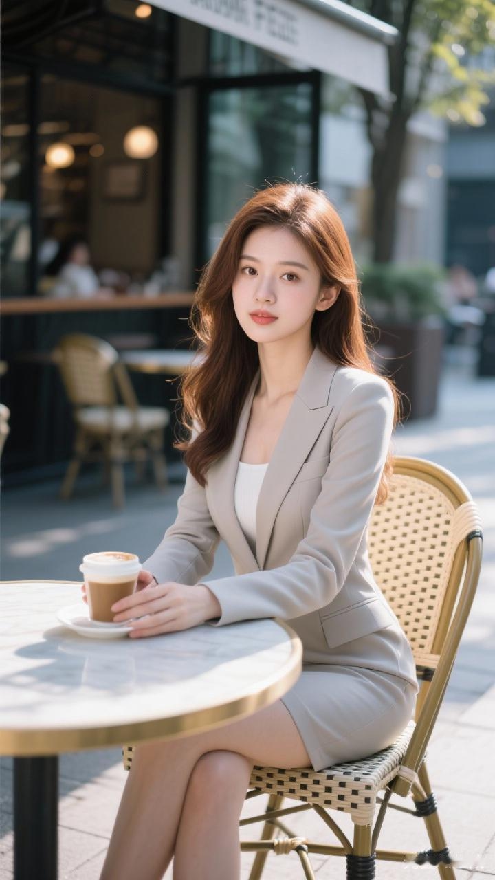 都市雅致,咖啡时光,时尚职场女性,享受宁静午后。