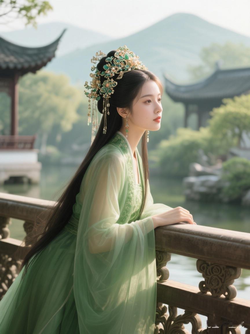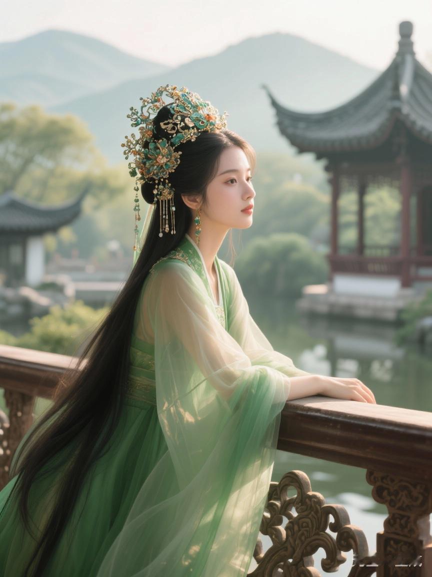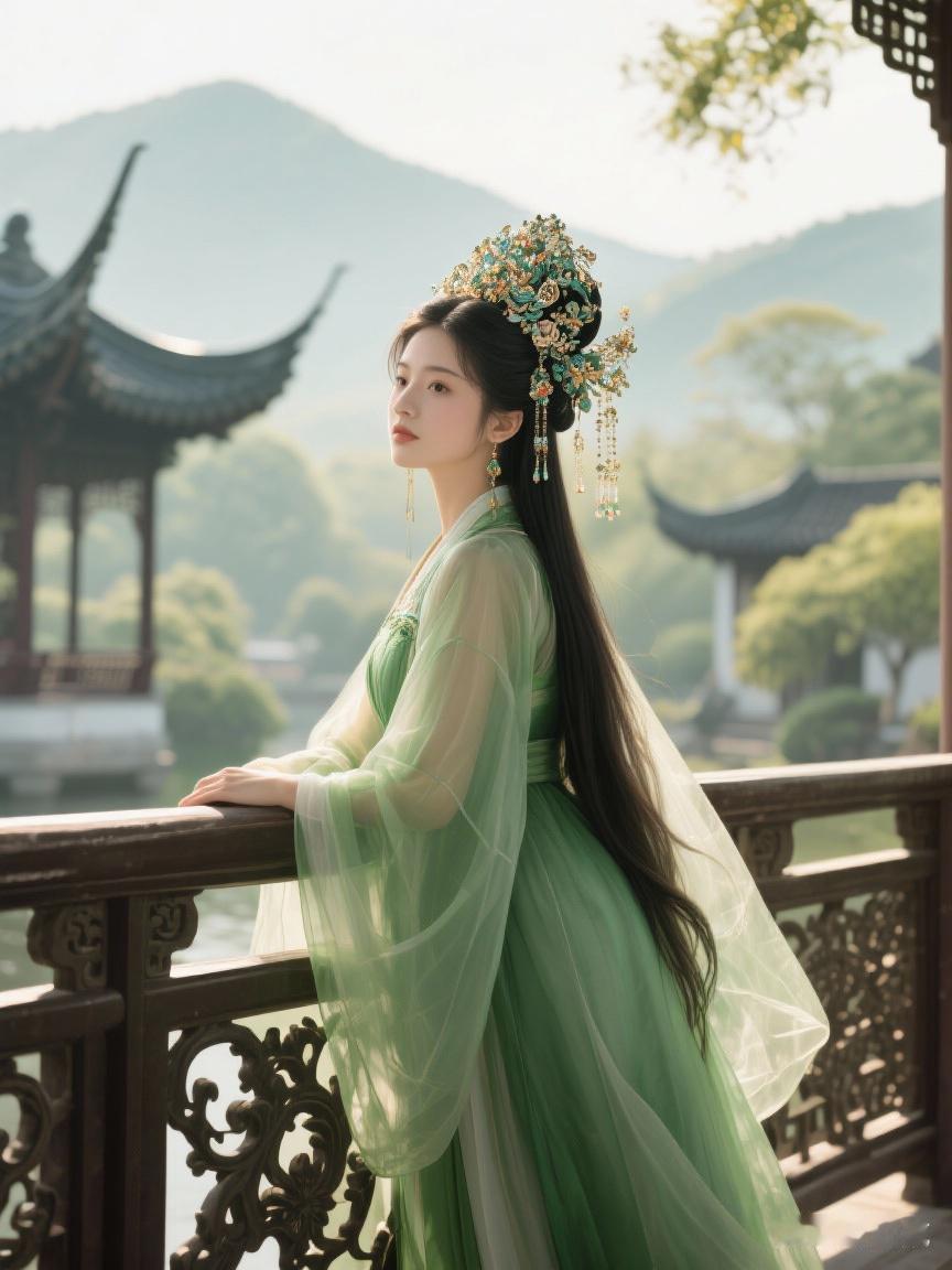 “碧水青山映古风,美人倚栏思悠长”,这画面太美了。想象在那碧水悠悠处,青山连绵,如一幅天然的古风画卷。 就像那晨曦中的青石巷旁,碧水如翡翠绸带环绕村落,岸边桃花灼灼。一位佳人仿佛从诗词中走来,发间小花灵动,或浅笑或远眺,每一个动作都藏着跨越千年的故事。 又似无锡惠山古镇的冬日,古风少女倚栏远眺,花影摇曳。白天感受古镇风雅,晚上来一顿海鲜火锅,鲜活食材涮入口中,满足又幸福。这古风之美,不仅在景,更在生活的韵味里。