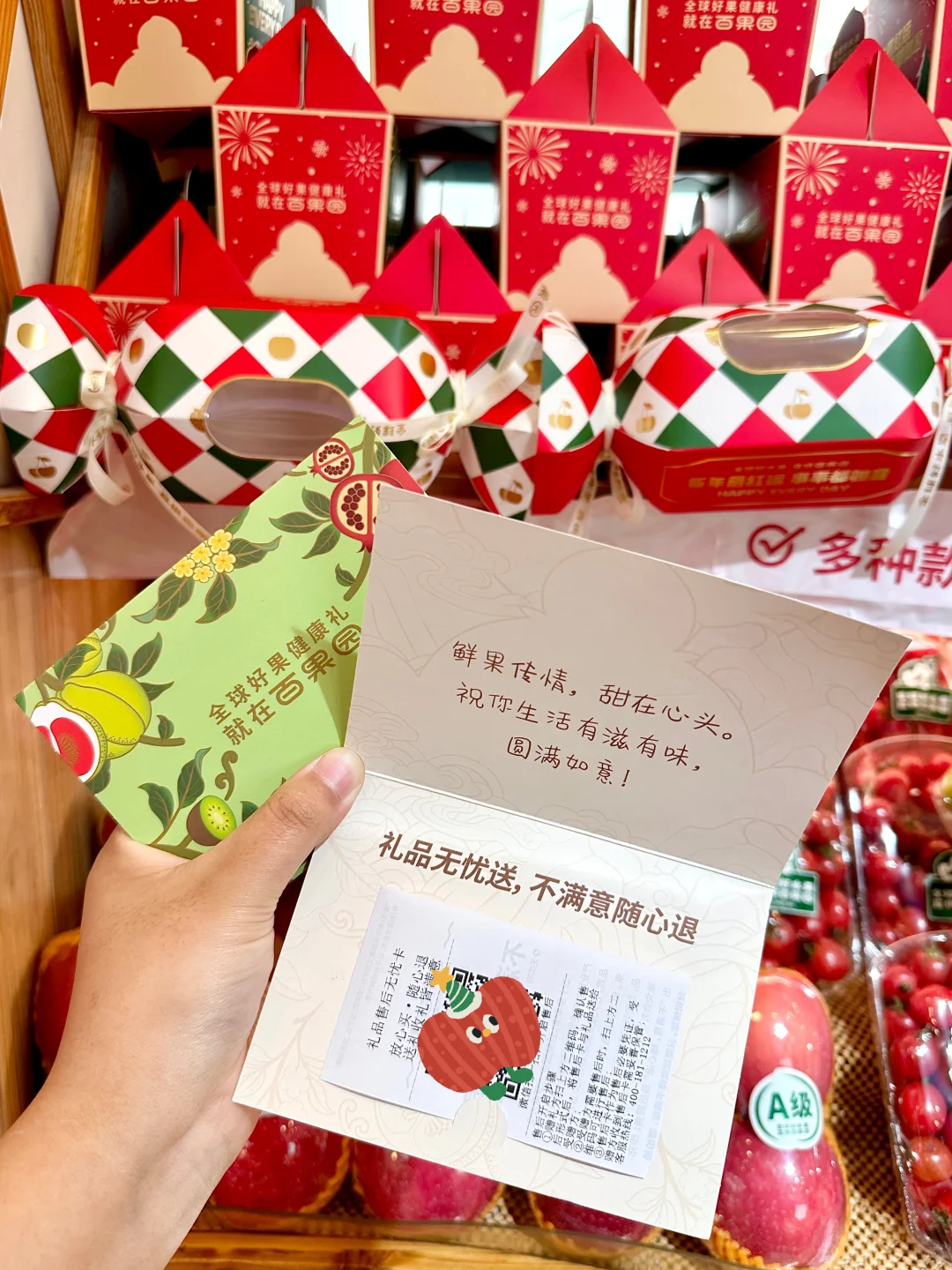 🌟重点夸夸百果园的“礼品无忧送”服务,买单时说明是送礼,就会给一张售后卡,收礼人不满意可以自己售后,完全不用怕尴尬,送的人放心,收的人开心~
