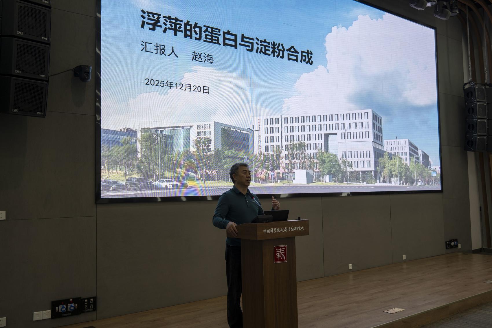 成都生物所研究员赵海分享浮萍在农业领域的应用。图片由成都生物所提供