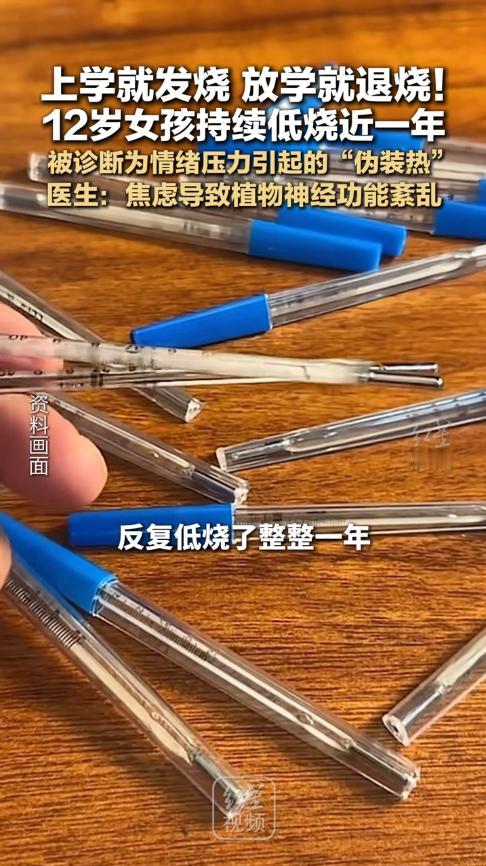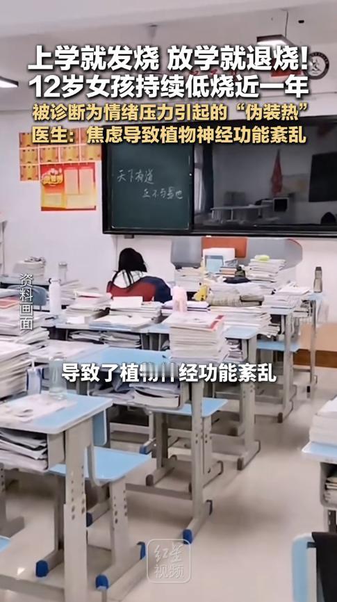 “活久见!”河南,12岁女孩持续发烧一年,但是最高也不会超过37.5℃,最诡异的是,女孩每天早上上学时,体温就开始上升,放学后又自动退烧!医生检查后,诊断为“伪装热”,孩子学习压力大引起的。网友:该去看心理医生。 现在小孩子的压力可一点都不小,学习是一方面,更多的则是来自家长,不仅给孩子报了一大堆的兴趣班,还要过早的学习其他知识,美其名曰“不能输在起跑线上”,可是孩子长期处在高压下,身体也会吃不消。 据媒体12月20日的报道,女孩从上年升入初中后,就变得没那么开朗了,一段时间后,更是开始频繁发烧。 家长一开始以为是感冒了,可是吃了药也降不下去,即使退烧了,到了第二天还会烧起来。一年来,家长陆续带孩子去了多家医院检查,最终医生给出的结论是“伪装热”。 说得通俗一点,就是情绪导致的发烧。原来,女孩升入初中后,学业压力压得她喘不过来气,而家长又在各个方面对她严格要求,久而久之,女孩的心理就有些承受不住了,最终反应在了身体上。 所以只要不上学的时候,女孩就非常正常,一想到要去上学,便发起烧来。 网友看后表示,做家长可要长点心,孩子还小,不要给人家这么大的压力,平时应该多关心孩子的生活,而不是一味的严要求,适当的放松,才能让他们更好地成长。 信息来源:《12岁女孩患怪病,上学发烧放学退烧,最高不超过37.5℃,医生:是“伪装热”,可能是跟情绪有关》大象新闻