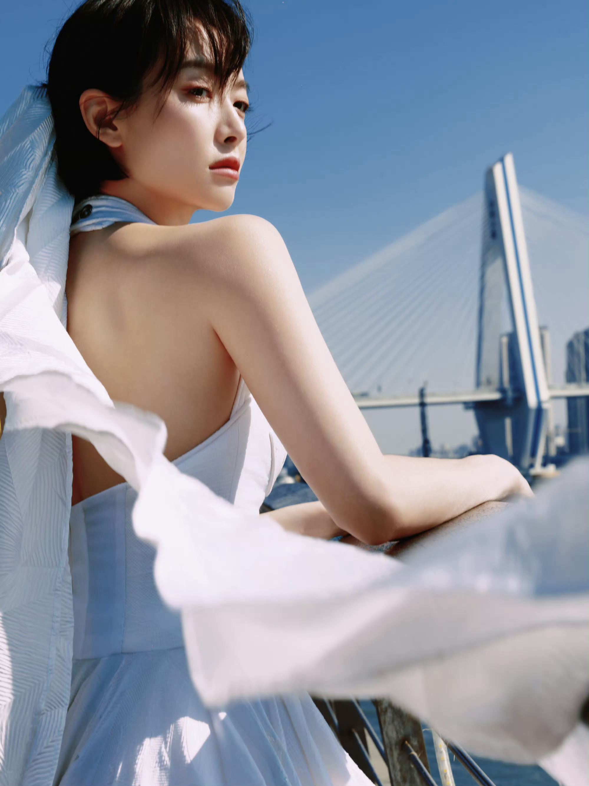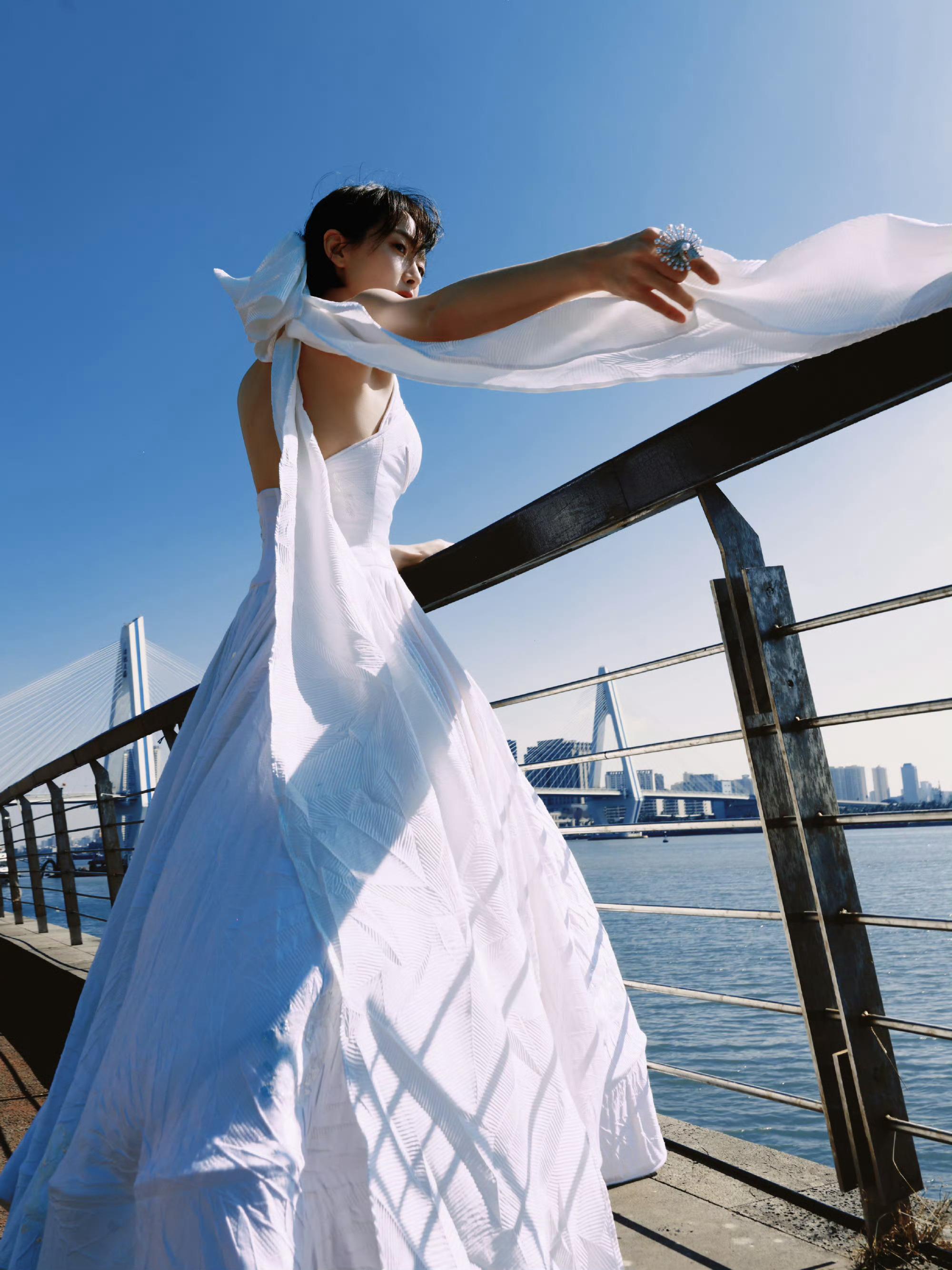 宋茜 今日星光大赏造型,一身Julien Fournié 2018年春夏高定系列的闭场婚纱礼服,白色伞裙配蝴蝶结头饰,优雅清丽的“楚瑜”。