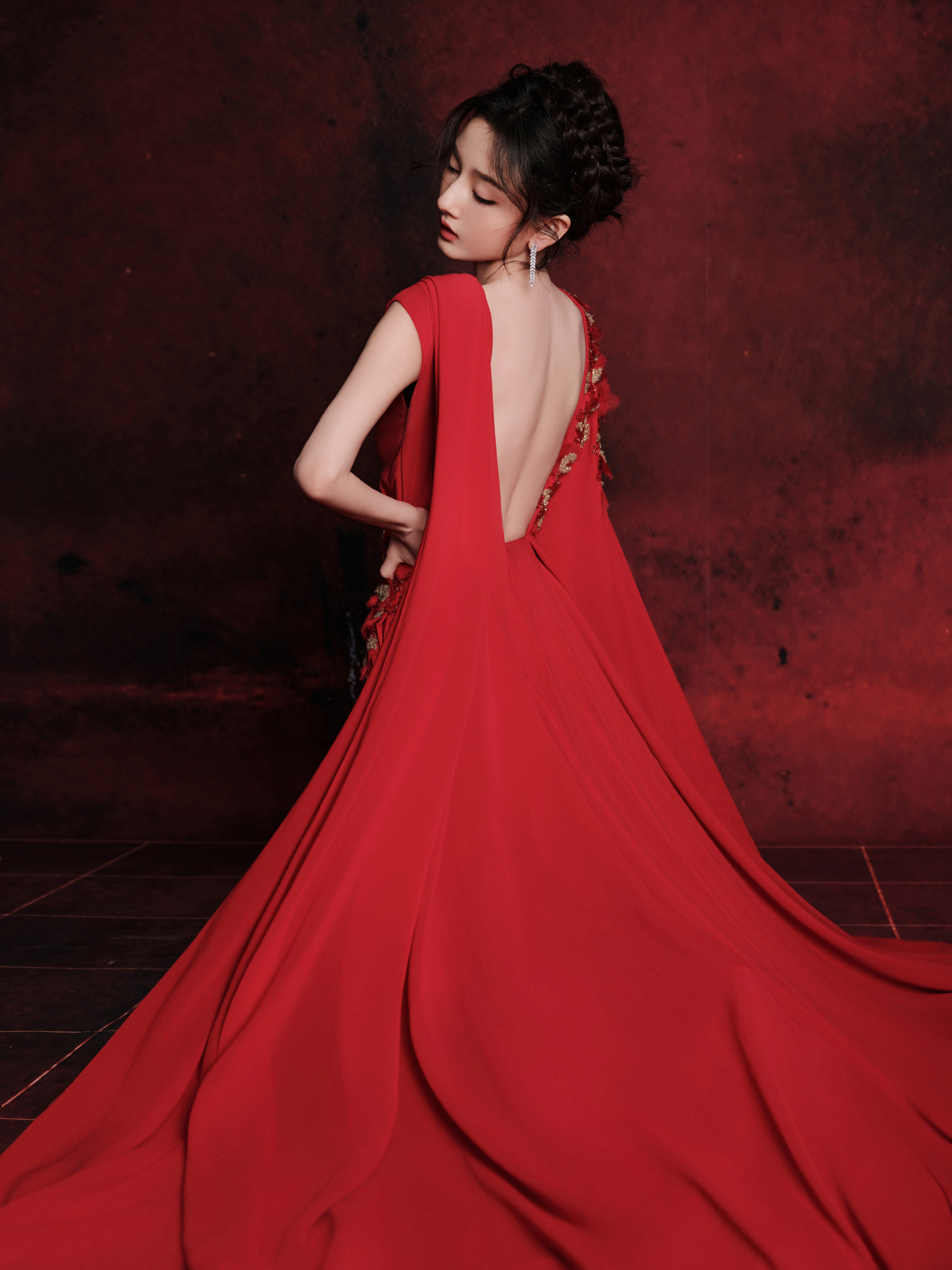 宋祖儿粉裙裁得春光软,抹胸凝香衬玉肩,庭前树影摇,一眼温柔入画梢。宋祖儿