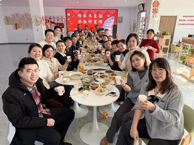 赶上冬至,少不了饺子。社区工作人员和部分居民忙活了一上午,包了多种口味的饺子。