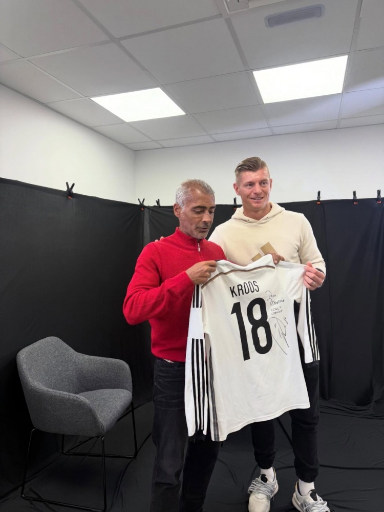 罗马里奥造访克罗斯在马德里开设的青训学院,对克罗斯进行采访,并获赠克罗斯签名球衣。
