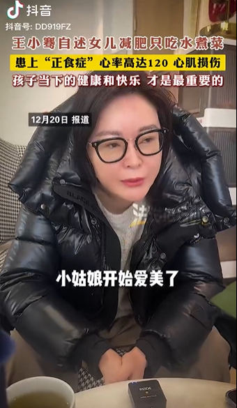 近日,原央视主持人王小骞在个人账号更新视频,自称青春期的女儿因爱美控制体重,油脂几乎不摄入,因此得了正食症,这是她第一次听说这个病。