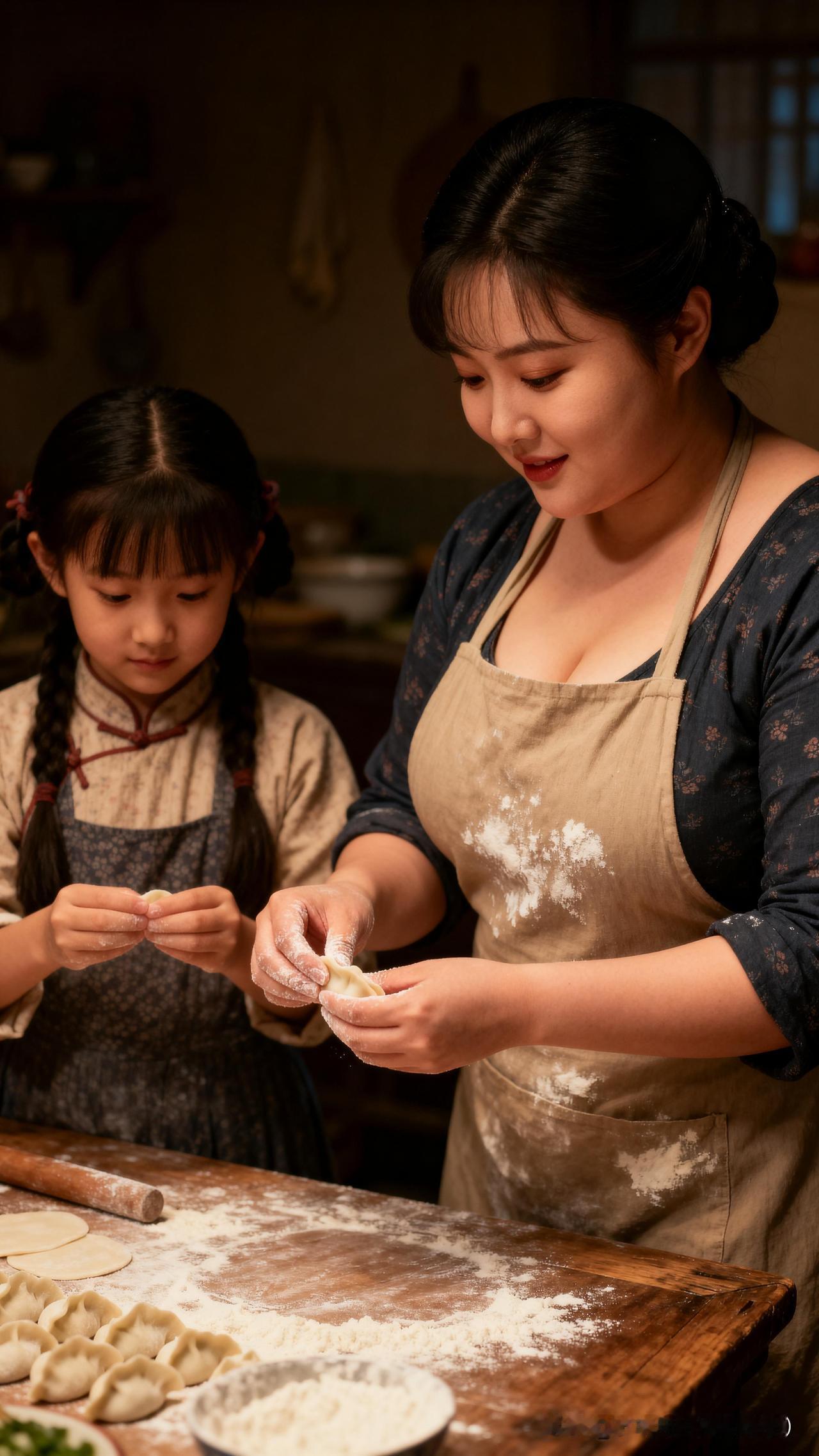 冬至的老屋里,昏黄灯光落满案板,面粉簌簌沾了衣襟。母亲的手带着温度捏出饺子的褶,小女儿扒着桌沿学样,稚拙的指尖也想揉出团圆的形状。窗外是冬日的寒,灶上是滚沸的水,一碗冬至饺,把岁月里的团圆与暖,都盛得满满当当。 我是苏晓冉 我为AI立心 冬至味道