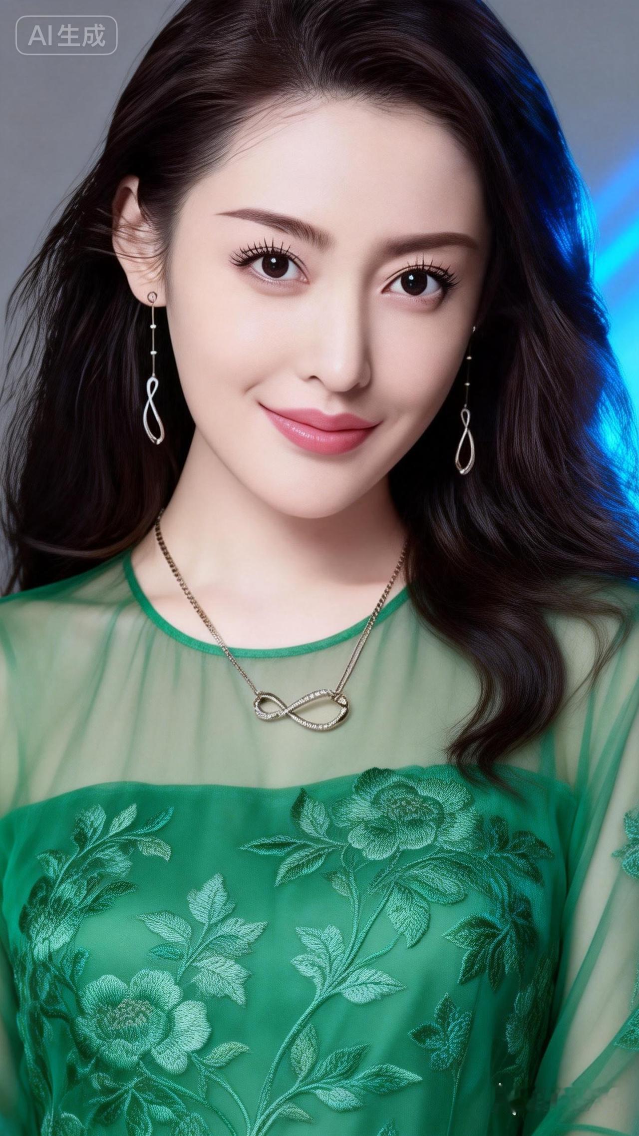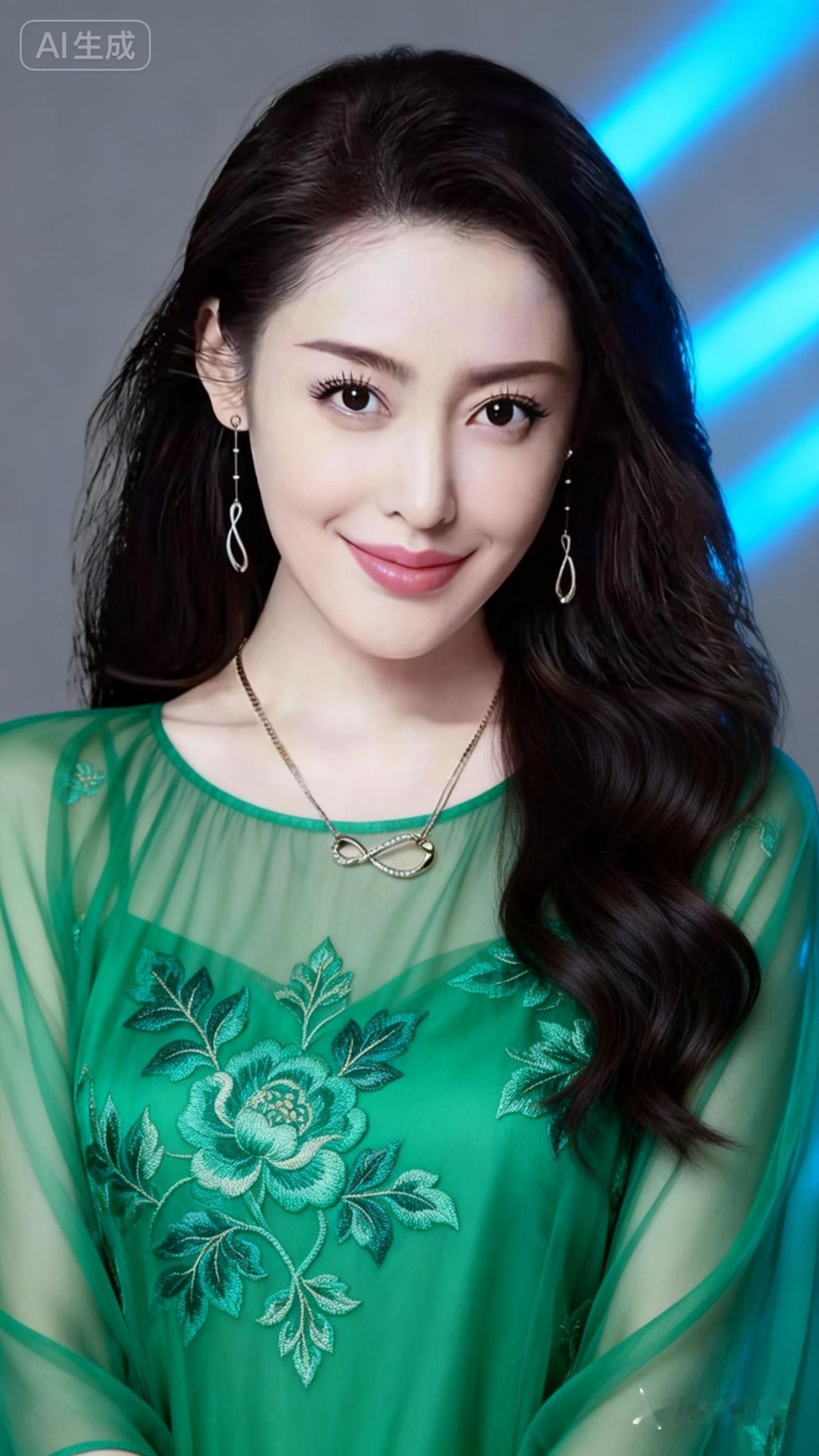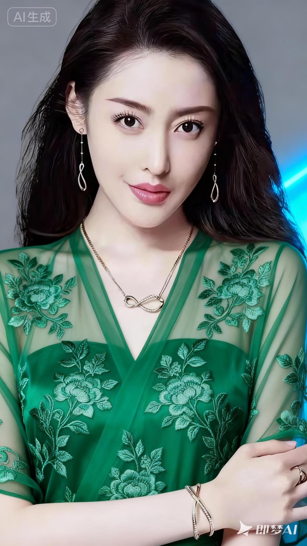 优雅绿衣少女,梦幻花枝点缀,温柔气质满满