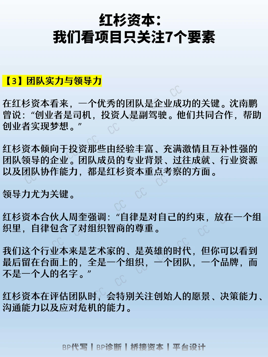 【3】团队素质:考察创始团队的能力和领导力,确保项目高效运作并应对市场变化