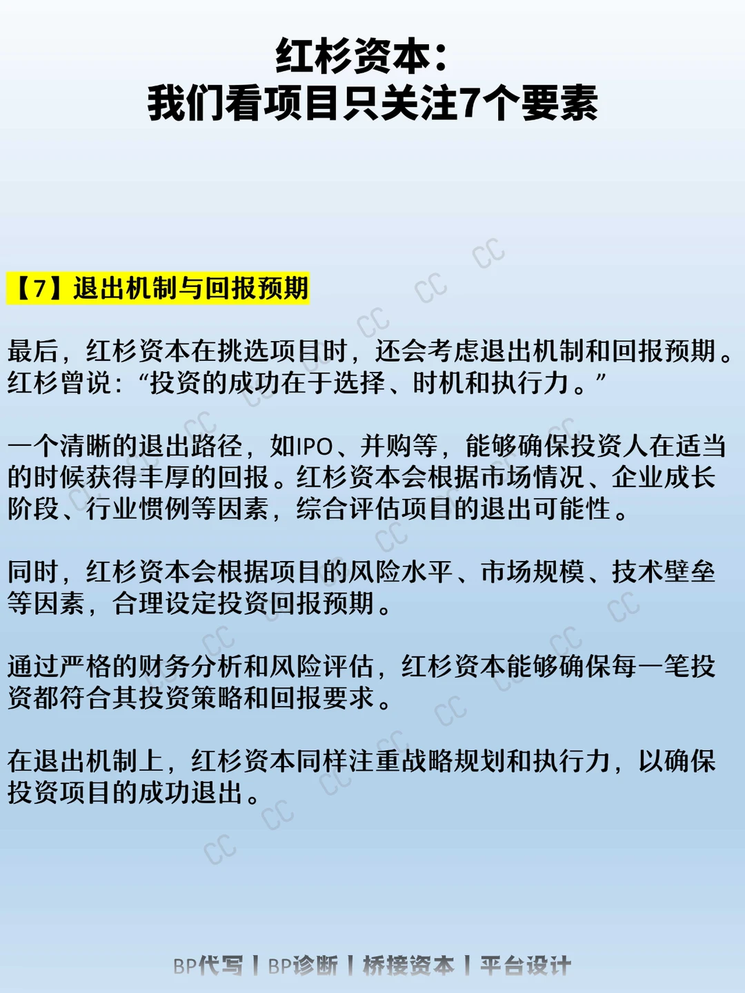 【7】退出策略:确保有明确的退出方案,保障投资者能够实现预期回报并顺利退出