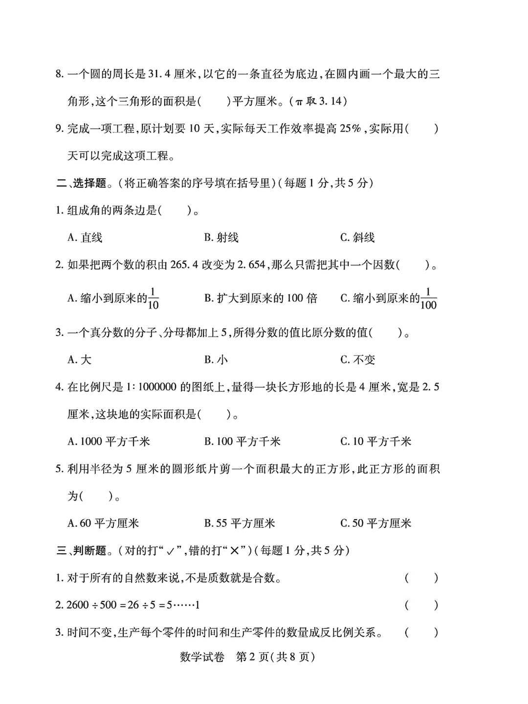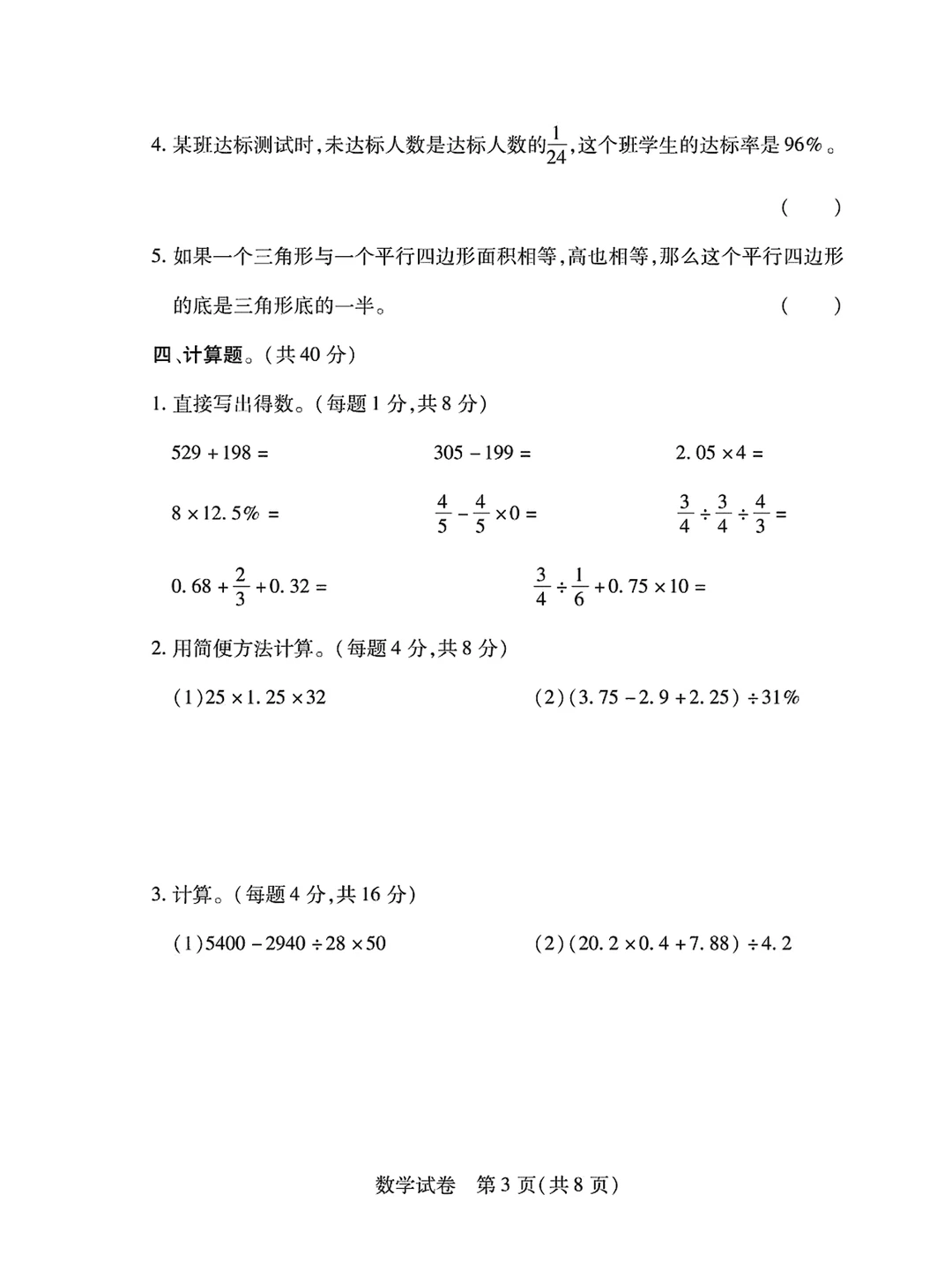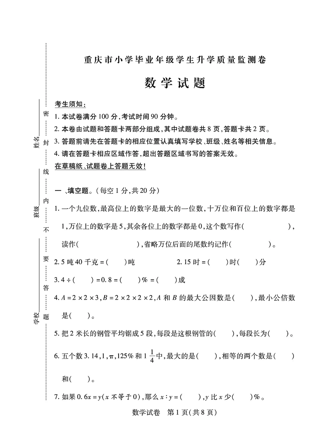 🔥重庆市2023年小学六年级毕业升学检测卷
