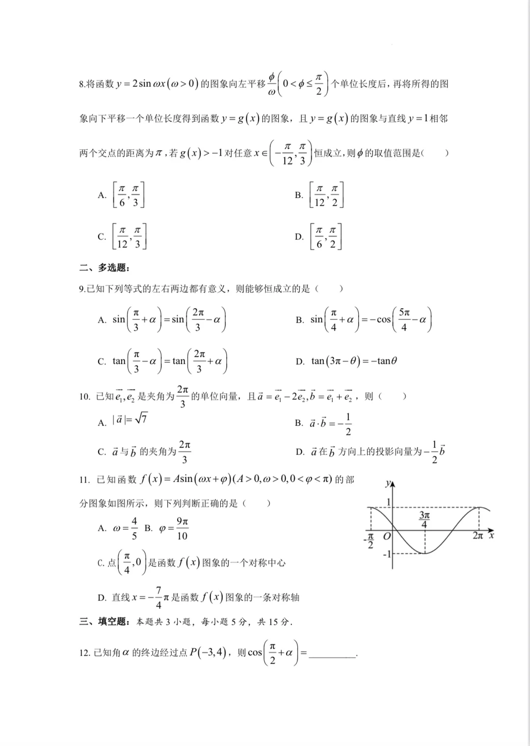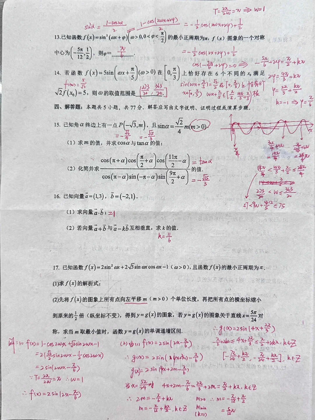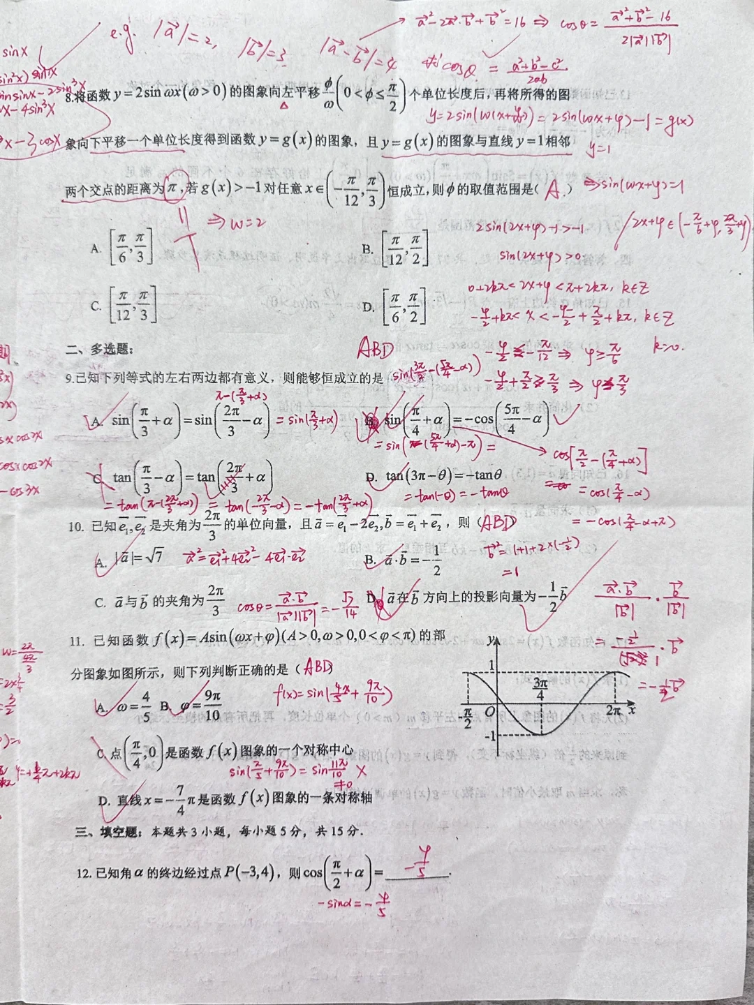 月考前准备了一套复习题,空白卷放在后面啦~ 这次月考范围是三角函数和平面向量,难度应该很高,当然这套题很简单,给学生树立信心吧~