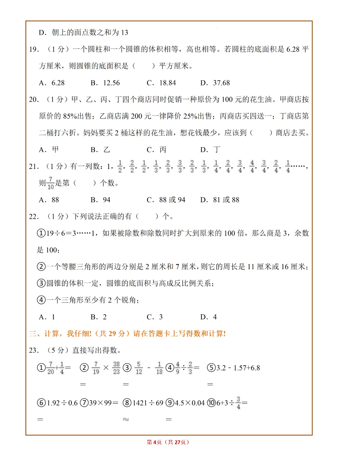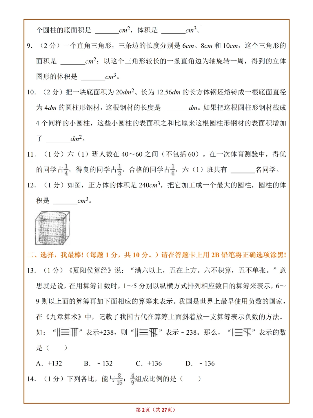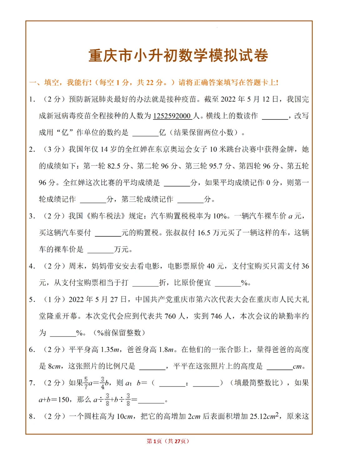 🚩重庆小升初名校数学模拟卷📝,打印给孩子练习,冲刺提分💯