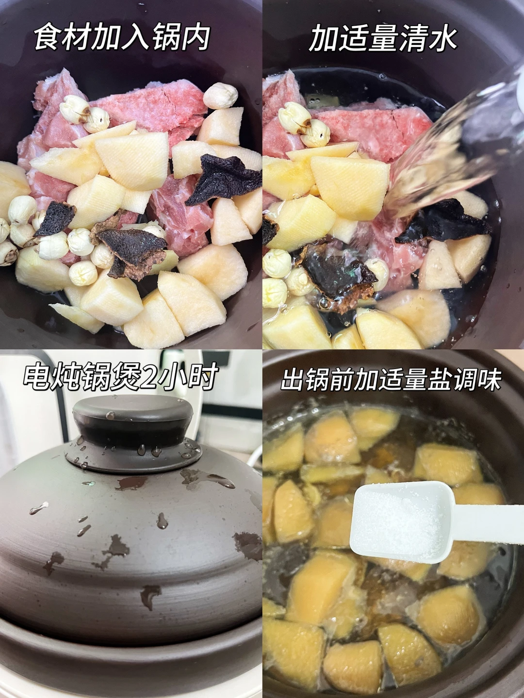 2️⃣ 所有食材加入锅内,加适量清水,电炖锅煲2小时。