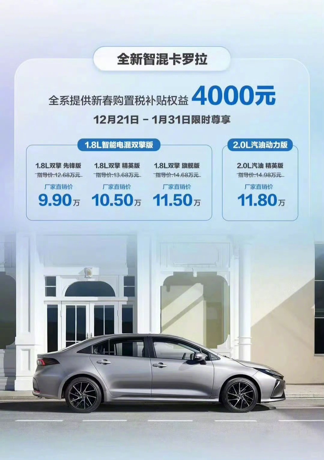 中期改款卡罗拉上市,1.8L双擎9.9万起。全系标配Toyota Pilot辅助
