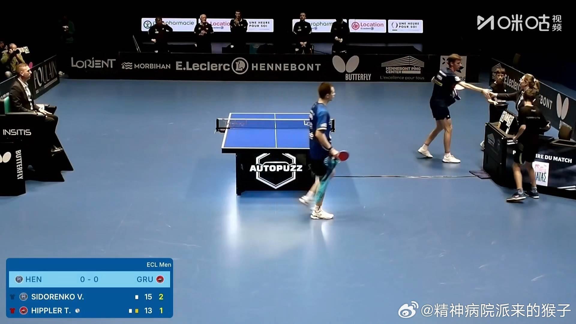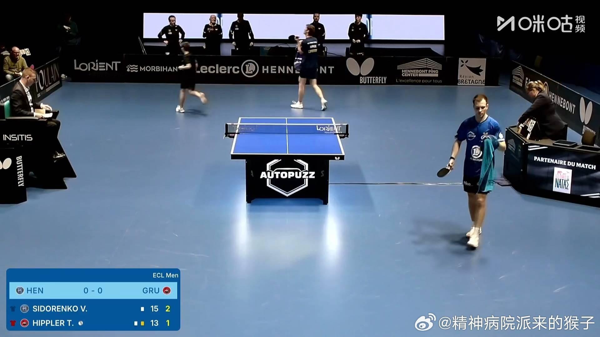 西多仁科3比1希普勒(-9,8,6,13)第二盘:温瑞博VS筱塚大登亨尼邦一比零格伦韦特斯巴赫2025-2026赛季欧冠乒乓球联赛1/8决赛