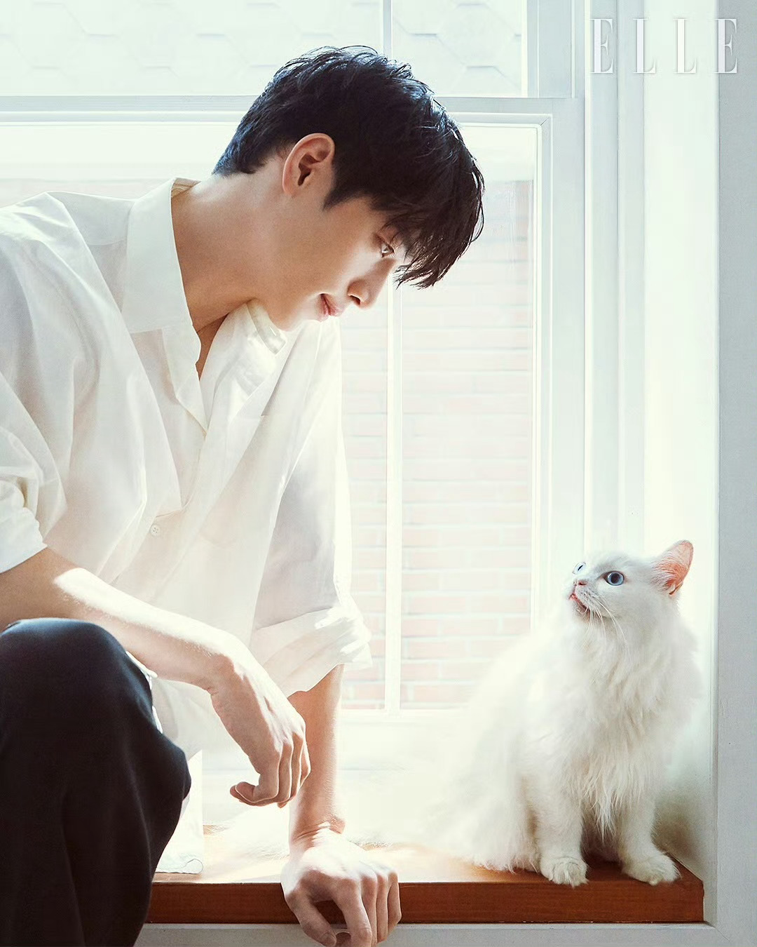 徐康俊 ELLE KOREA 📷🐈 带着爱宠一起出镜,简约舒适造型,随性自然风格,这组很有冬至的温暖氛围。蓝瞳白猫真好看~