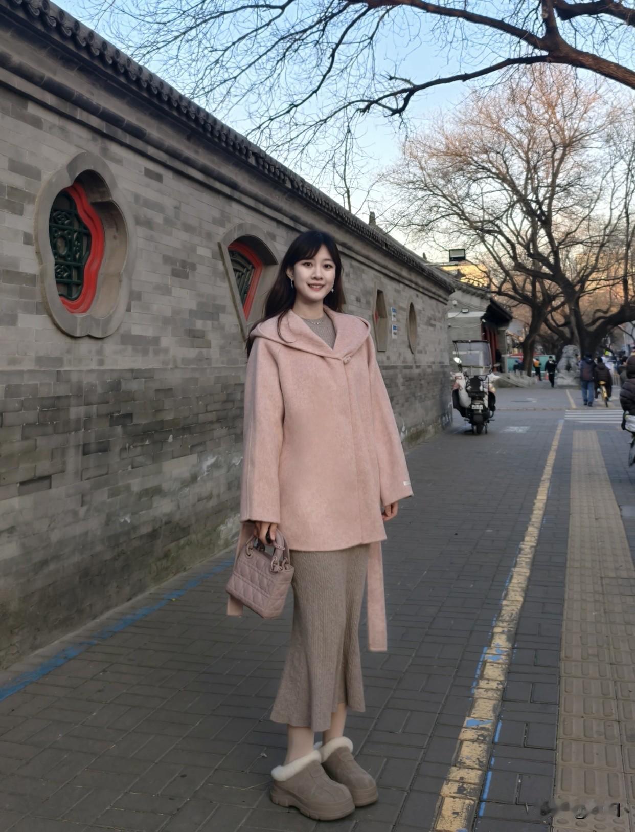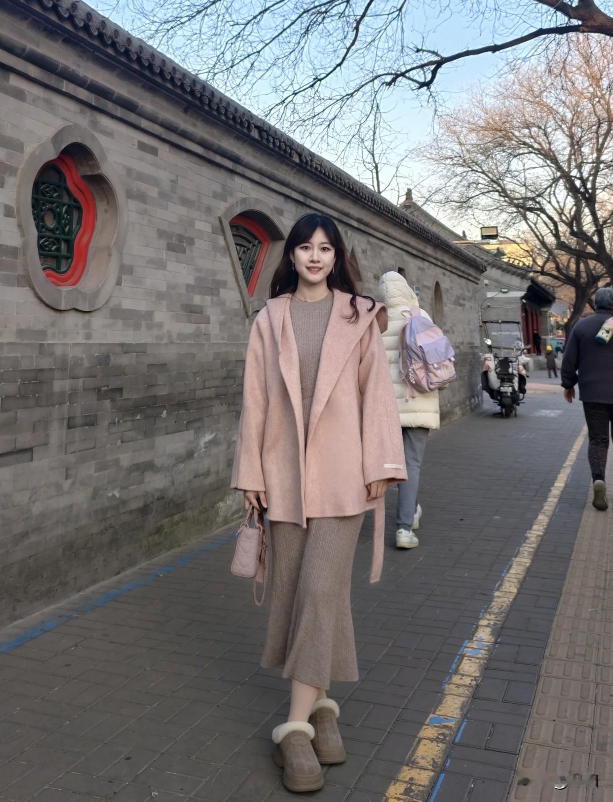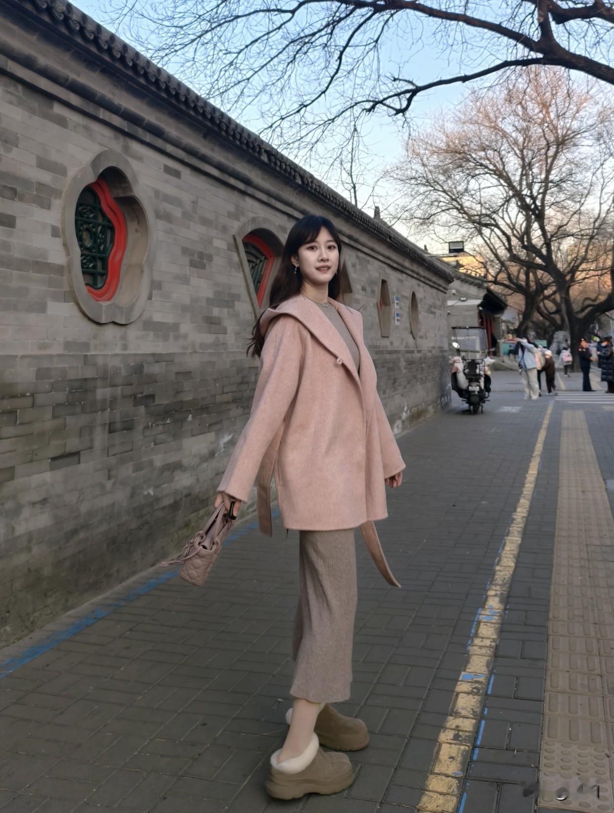 怎样搭配衣服会显得时尚一些浅粉色外套搭配羊毛衫长裙