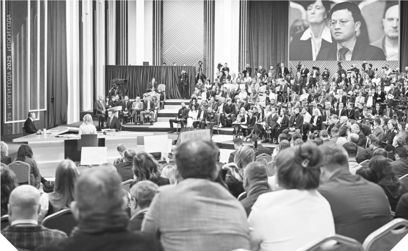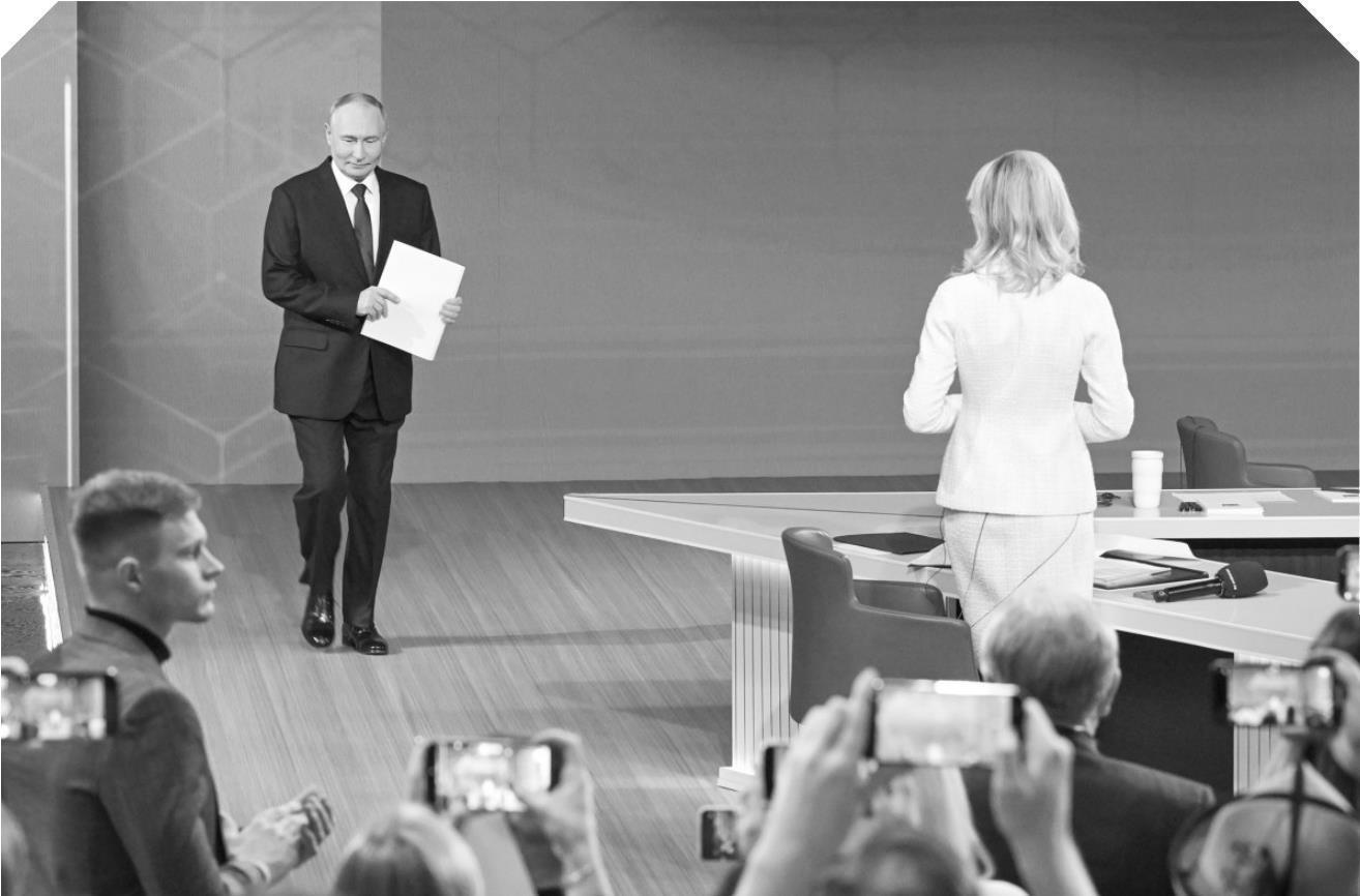 下图:普京在“年度盘点”活动上回答记者提问。新华社记者郝建伟摄