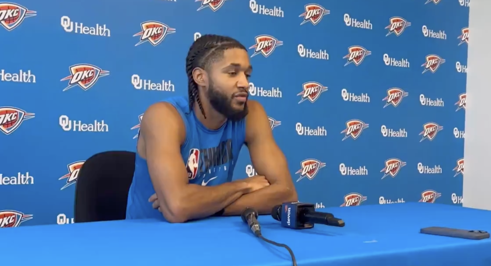 雷霆球员以赛亚-乔接受了记者采访。