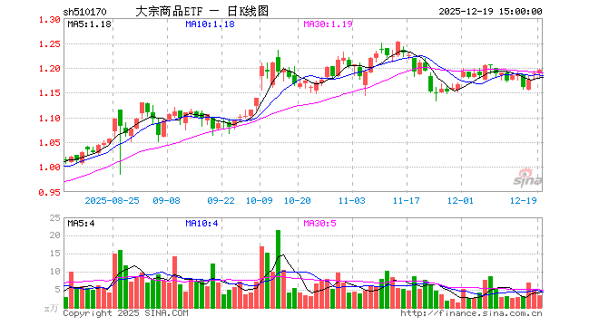 12月19日,大宗商品ETF(510170)涨0.67%,成交额415.39万元。当日份额增加200.00万份,最新份额为2.59亿份,近20个交易日份额增加1000.00万份。最新资产净值计算值为3.09亿元。