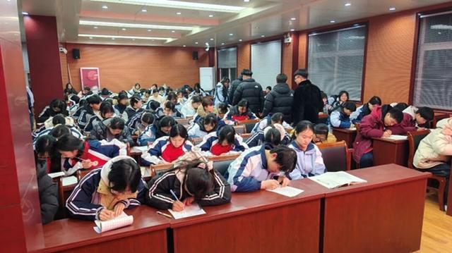 比赛现场秩序井然,墨香四溢。参赛同学们满怀热忱,坐姿端正,神情专注,手握笔杆,于方格纸间挥洒才情。他们笔下的字迹或端正隽秀,或刚劲有力,或飘逸灵动,将经典诗句化作一幅幅赏心悦目的书法作品,不仅展现出砀山四中学子扎实的书写功底和文学素养,更传递出他们对中华优秀传统文化的深刻理解与传承。