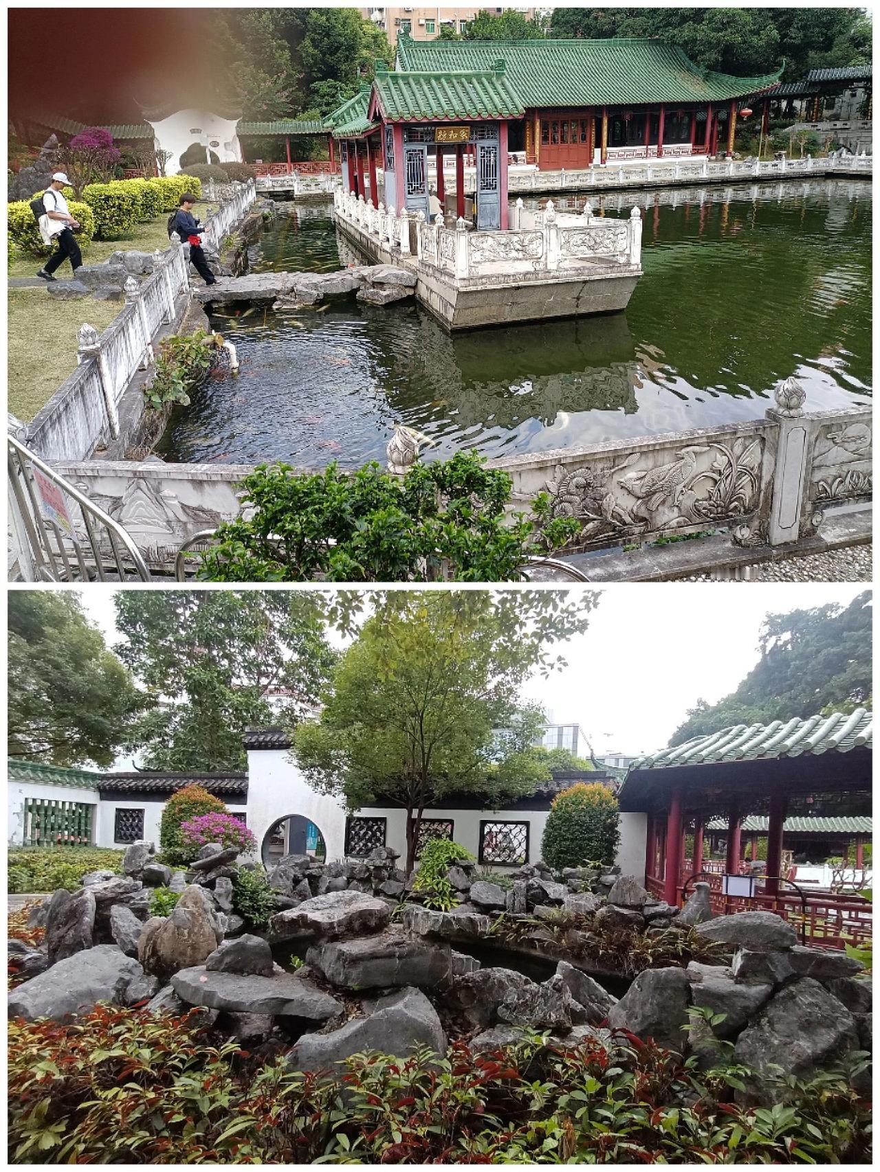 到深圳锦绣园游玩,原以为也是国内山水微缩景观。车行过去像村路的感觉,又以为受地图骗了,到了眼前一亮来对了(图1)。进园内更是令人惊叹这不是红楼梦中的大观园吗(图2)。 锦绣园很大,步步为景,走一圈,美景让人目不暇接。你看,小桥流水长廊蜿蜒,临水而立(图3-5);一座座楼台亭阁、飞檐翘首、雕梁画栋,白墙黛瓦、古园圆门(图6-7);碧潭如镜、锦鲤游龙(图8);碧池曲桥、假山怪石(图9)。 深圳 红楼梦 公园 治愈系风景
