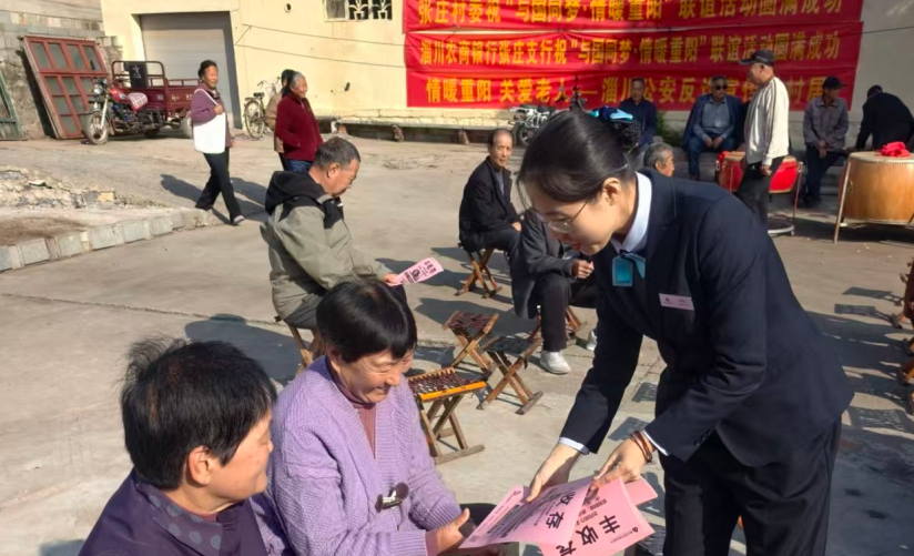 志愿服务,积极践行社会责任。积极对接供热保障服务中心、街道、村委等,采取上门代收的方式,在供热服务中心、村委设立缴费专柜,让群众在家门口缴纳取暖费。累计为群众收取取暖费2000余笔,700余万元,将缴费柜台搬到老百姓家门口。洪山支行党支部重阳节走进洪山养老服务中心,开展“岁月沉淀温暖,我们给您陪伴”志愿服务活动,为老人们送去米面油等生活物资,与他们拉家常、问需求,用真诚陪伴让老人感受到“家”的温暖。张庄支行党支部参加“与国同梦情暖重阳”联谊活动,开展反洗钱、防诈骗金融知识宣讲,为老百姓送金融知识。(通讯员王媛媛)
