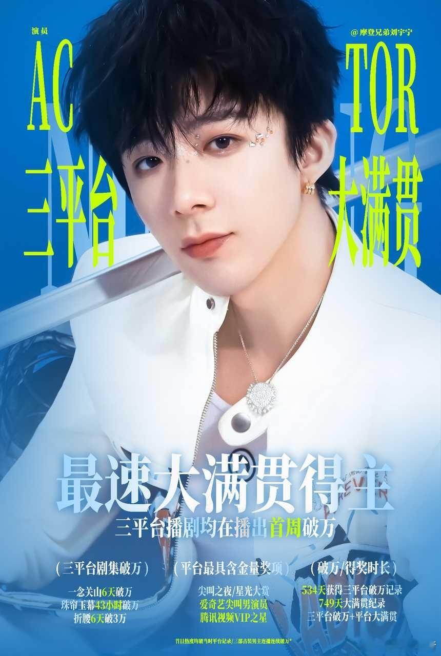 恭喜刘宇宁拿下腾讯年度VIP之星!三平台破万+爱奇艺尖叫男神+腾讯年度VIP之星