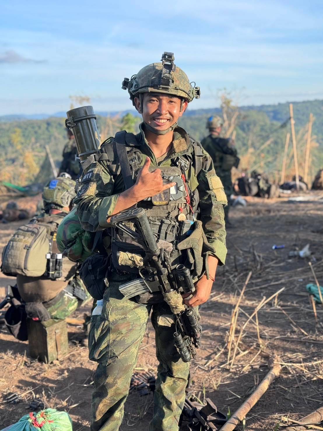 泰柬冲突泰柬冲突13条战线军迷天地东南亚军情 本次泰柬冲突,泰军为了配合常规部队拿下各个相对难啃的重要地点,从各军种/警察抽调精锐特战力量组成了一支联合特遣队(Special Operation Task Force,从一些流出图片可以看到部分人员佩戴了SOTF字样的识别臂章),根据作战需要他们时而集中使用组成最精锐的攻坚力量,时而拆散加强到各个担任主攻的常规单位里协同作战。从前线流出信息和图片看目前已经实锤上场的各支特战力量简单信息汇总: 图1至图3,泰国皇家陆军特战司令部第三近卫特战团游骑兵营。了解过今年7月底的第一次冲突的朋友估计已经对这个单位很眼熟了,整个泰国皇家陆军里最精锐的快反轻步兵单位没有之一,从80年代效仿美国陆军75游骑兵团组建以来在历次冲突以及南部边境反恐维稳作战中可谓是劳苦功高,本次冲突中泰方到目前为止阵亡的三名特战人员均来自该单位。从已知信息看该单位在本次冲突中主要配属在柏威夏寺进攻方向,主要参与了677高地,达桂寺–350高地攻坚及打退柬军反攻的作战行动。 图4至图6,泰国皇家陆军特战司令部第三近卫特战团,特别行动营/90特遣队。在外界享有泰国三角洲绰号的陆军特战司Tire1单位,平时主要负责反恐和符合泰国利益的黑色行动所以公开信息不多。从已知信息看该单位在本次冲突中同样配属在柏威夏寺的进攻方向,主要参与了与游骑兵营协同的677高地以及与17步兵团2营协同的500高地攻坚作战。 图7至图9。泰国皇家海军特战司令部,也就是泰国海豹突击队,从已知信息看在本次冲突中主要配属在达叨府进攻方向,配合海军陆战队一起拿下了“三栋房屋”地区。 图10至图12。泰国皇家海陆陆战队侦搜连,可以看做泰国人的FR/MARSOC,达叨府进攻方向海陆军战队自己的精锐力量,主要参与了“三栋房屋”地区的攻坚,还有就是昨天攻入了菩萨镇电诈园区露了大脸 图13至图15,泰国皇家边防巡逻警察空中支援司令部3分处特别行动单位纳黎萱261,泰国边防巡逻警察的精锐反恐单位。该单位目前为止实锤的流出图不多,主要配合第一军区的武拉帕特遣队/战斗群在沙剿府进攻方向。