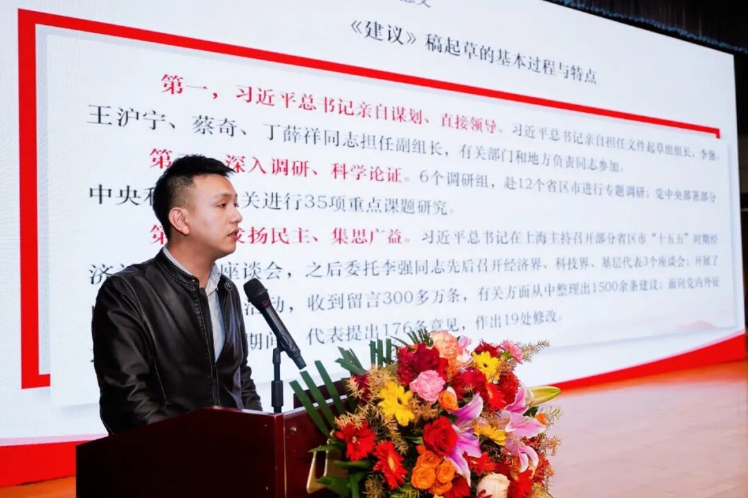 陈晓伟博士主题分享浙江大学马克思主义理论创新与传播研究中心研究员、管理学博士陈晓伟以《为基本实现社会主义现代化而共同奋斗——学习贯彻党的二十届四中全会精神》为题,介绍了二十届四中全会的重大意义和需要准确把握的主要内容。
