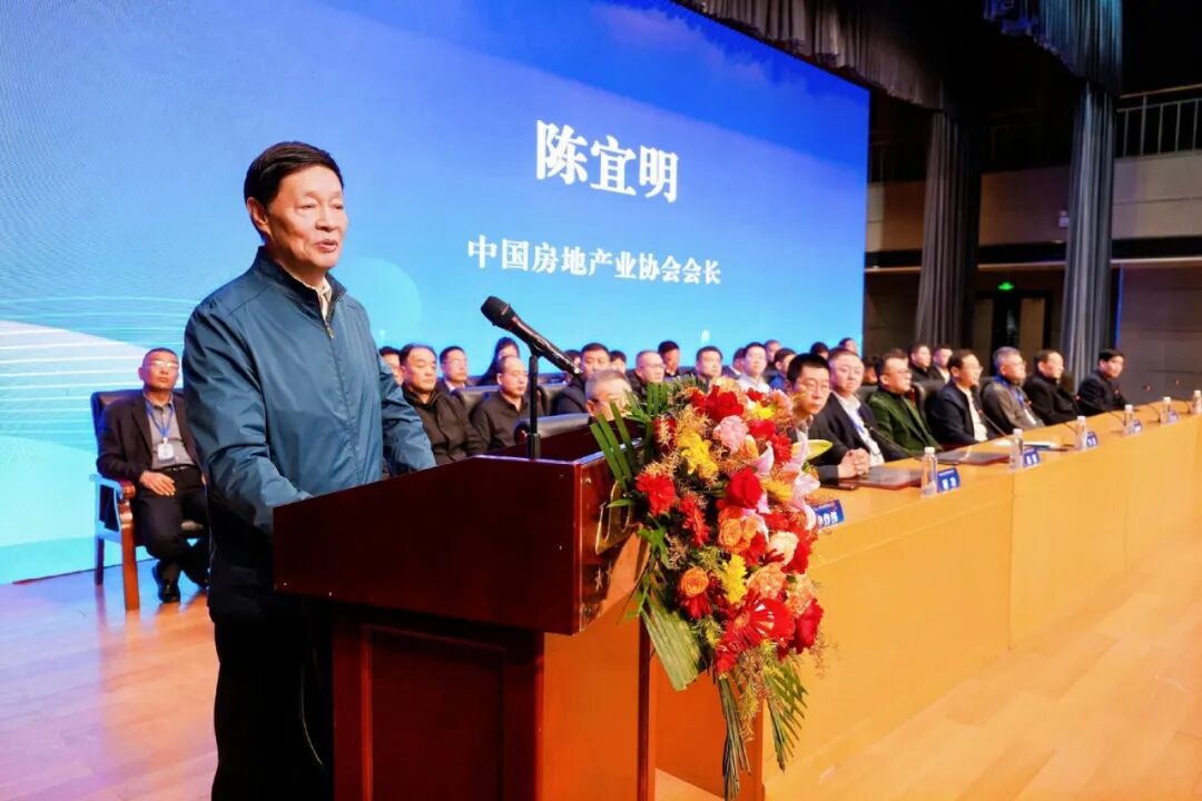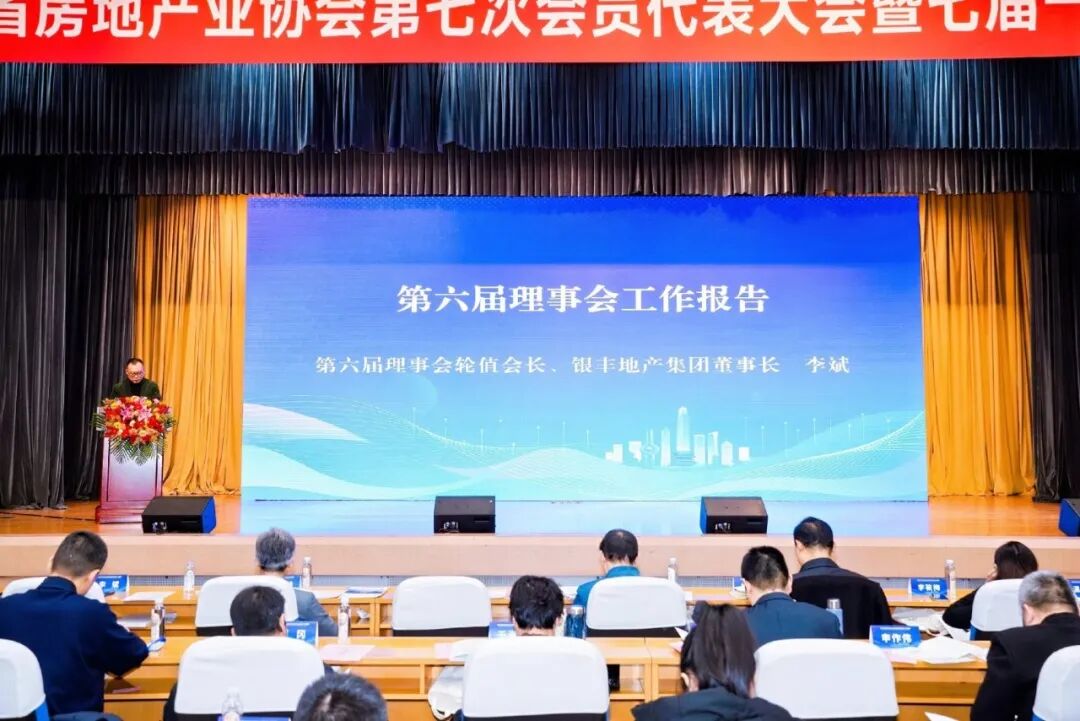 陈宜明会长为轮值会长单位颁牌第七届理事会首轮轮值会长、银丰地产集团有限公司董事长兼总裁李斌发言,他表示,新一届理事会将珍惜行业同仁信任,珍惜时代赋予的机遇,恪尽职守,勤勉工作,与全体会员一道,努力开创我省房地产高质量发展的新局面。