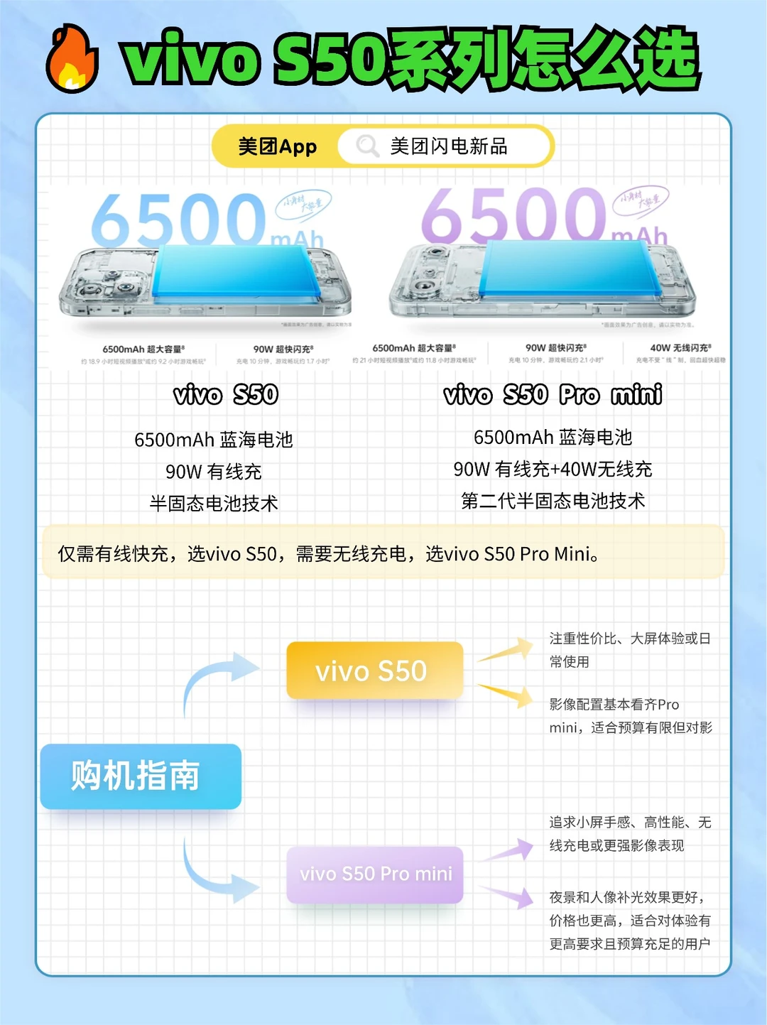 如果预算充足,追求小屏手感、高性能、无线充电或更强影像表现,选vivo S50 Pro Mini。