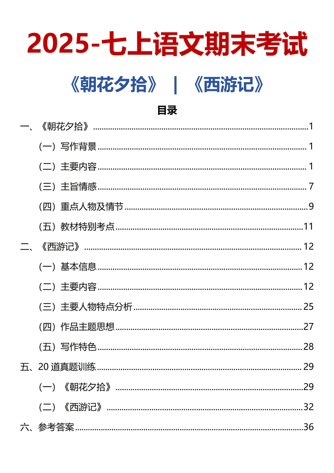 👉 我给大家梳理了七上期末必考的两本名著《西游记》和《朝花夕拾》的常考的知识点