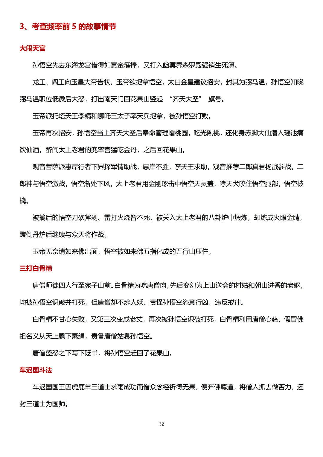 2、大闹天宫、三打白骨精、真假美猴王、三借芭蕉扇等高频考察内容的梳理