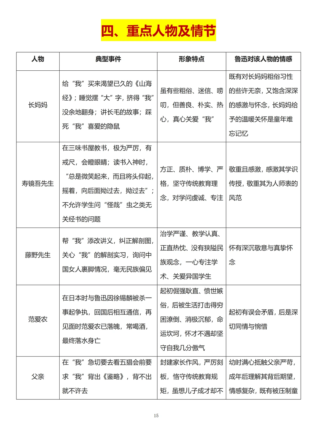 4、重点人物及情节