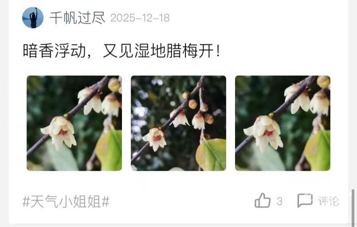 最近,在橙柿互动橙友圈里,不少橙友都在发一个很“冬天”的消息——蜡梅开了。