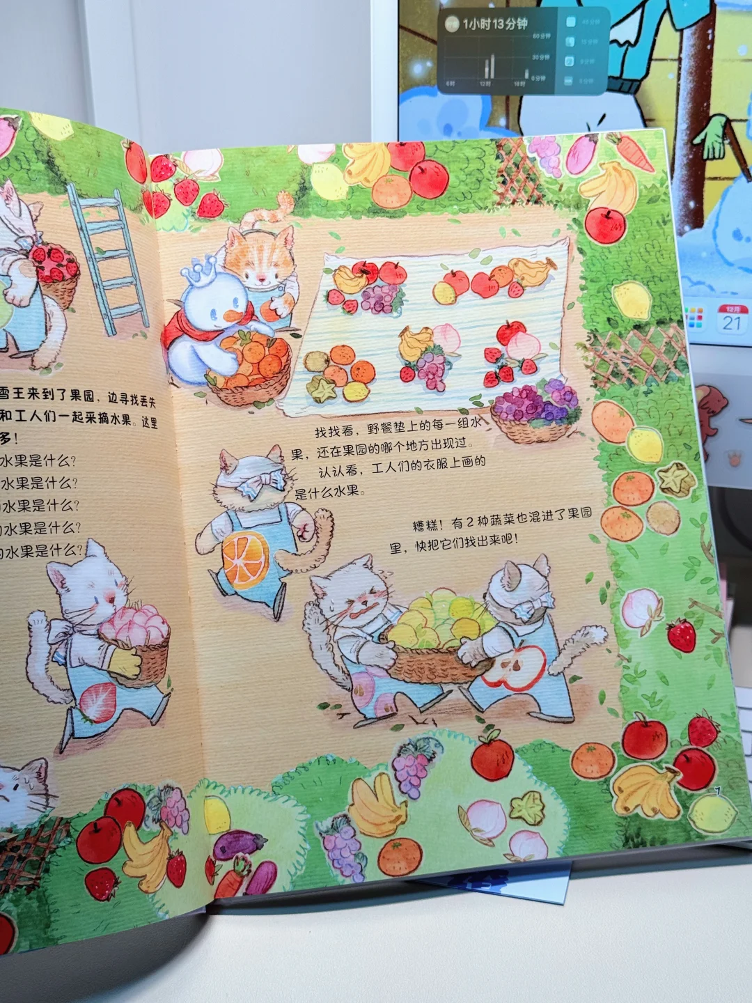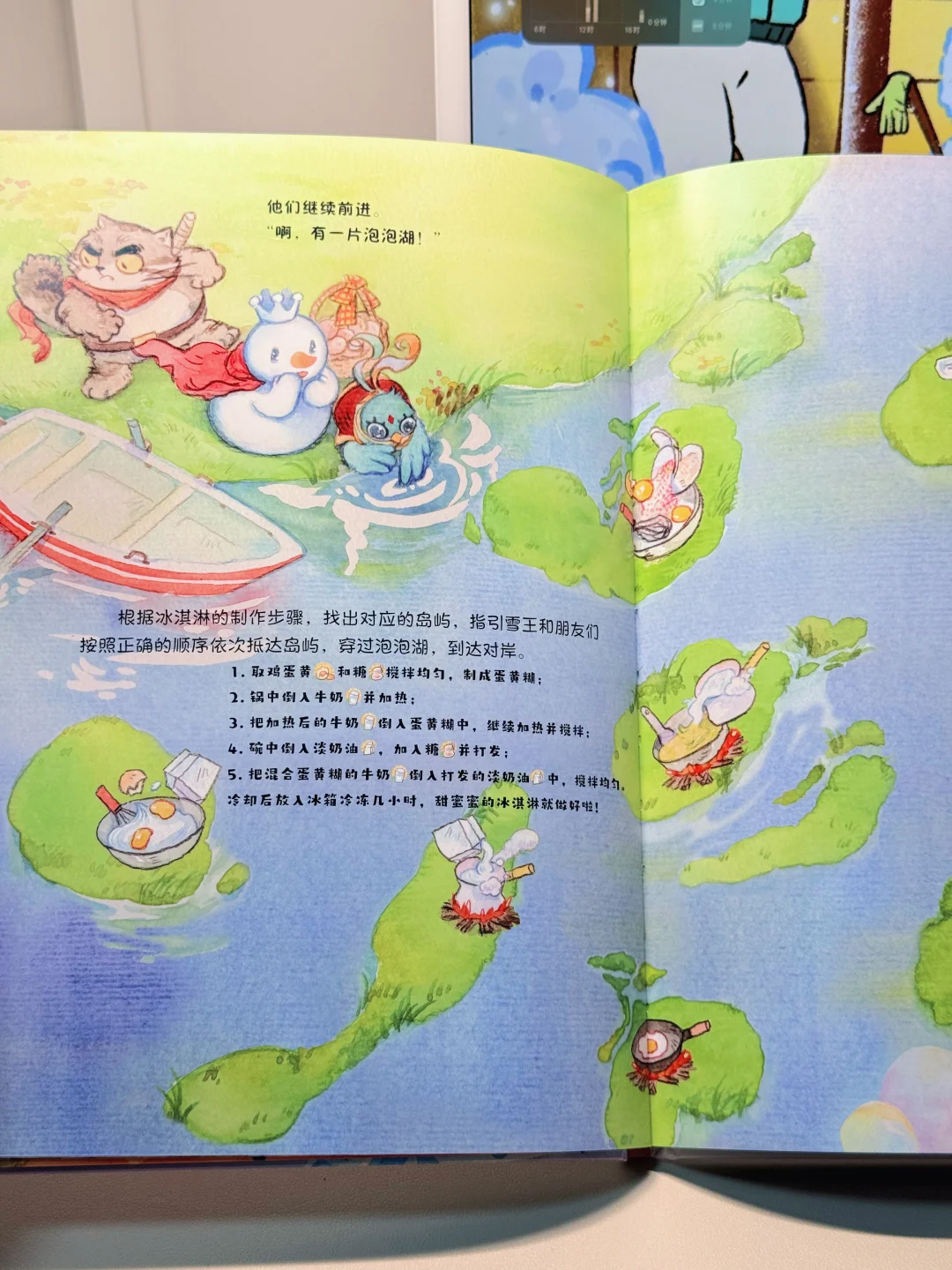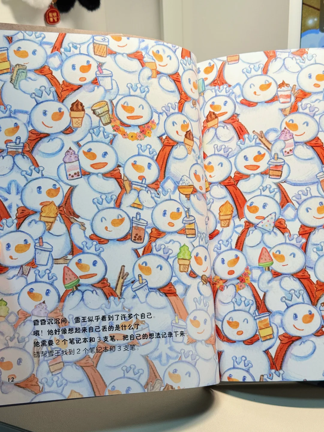 比如找食物、找数、算数、做冰淇淋的食谱、走迷宫等等,每页我都能看好久,一点都不枯燥,很有童心童趣,画风也特别可爱,看着看着就很像点蜜雪冰城,想象力也十分丰富,小故事写的很精彩呢!