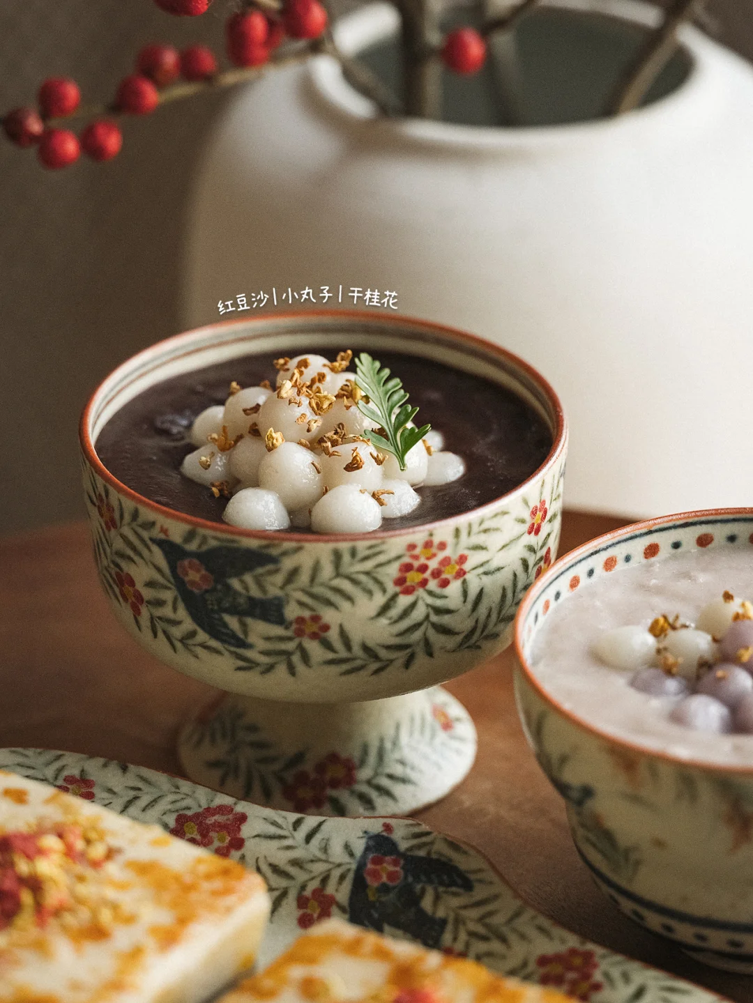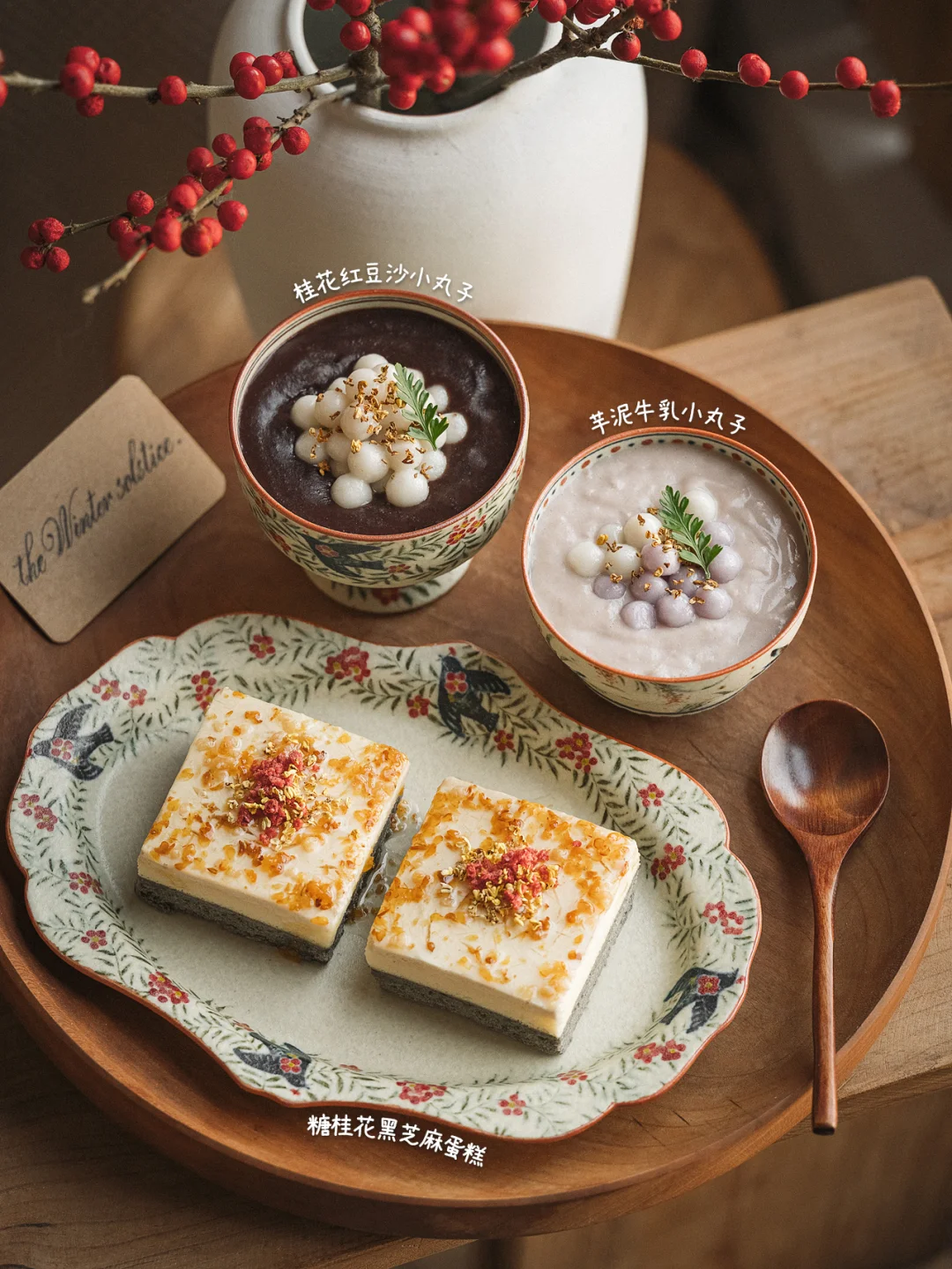 🫘桂花红豆沙小丸子 🍡芋泥牛乳小丸子 🍰糖桂花黑芝麻蛋糕 一口冬至甜,藏着最治愈的幸福感 团圆正当时,平安顺遂,冬至快乐