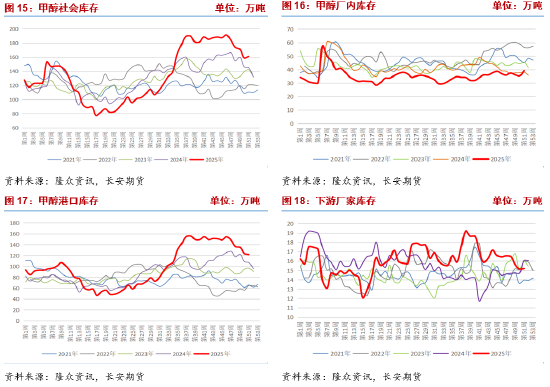 市场的核心驱动来自海外,尤其是伊朗。每年冬季,伊朗为保障民生供暖,会限制工业用天然气,导致其天然气制甲醇装置大规模停车。截至12月中旬,伊朗11套甲醇装置中已有8套停车,加之近期伊朗还面临社会动荡和罢工事件,进一步加剧了市场对供应持续中断的担忧。港口库存近期开始去化,主要原因是外轮卸货速度慢于预期以及部分货源倒流至内地,市场更关注的是,随着伊朗装船量预计从12月下旬开始减少,港口库存的实质性拐点有望在明年一季度出现。