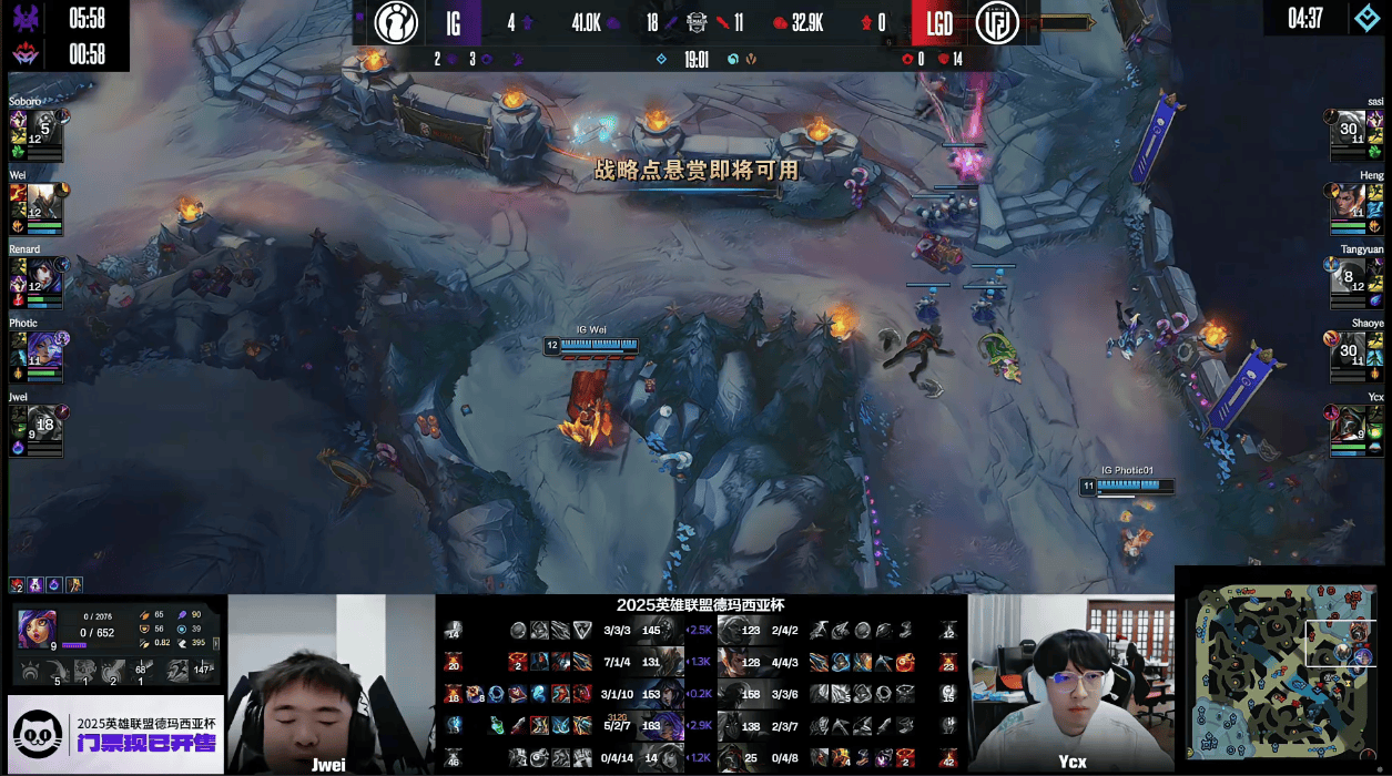 18分钟,LGD率先开打小龙,IG众人支援及时随后包夹取得团战胜利