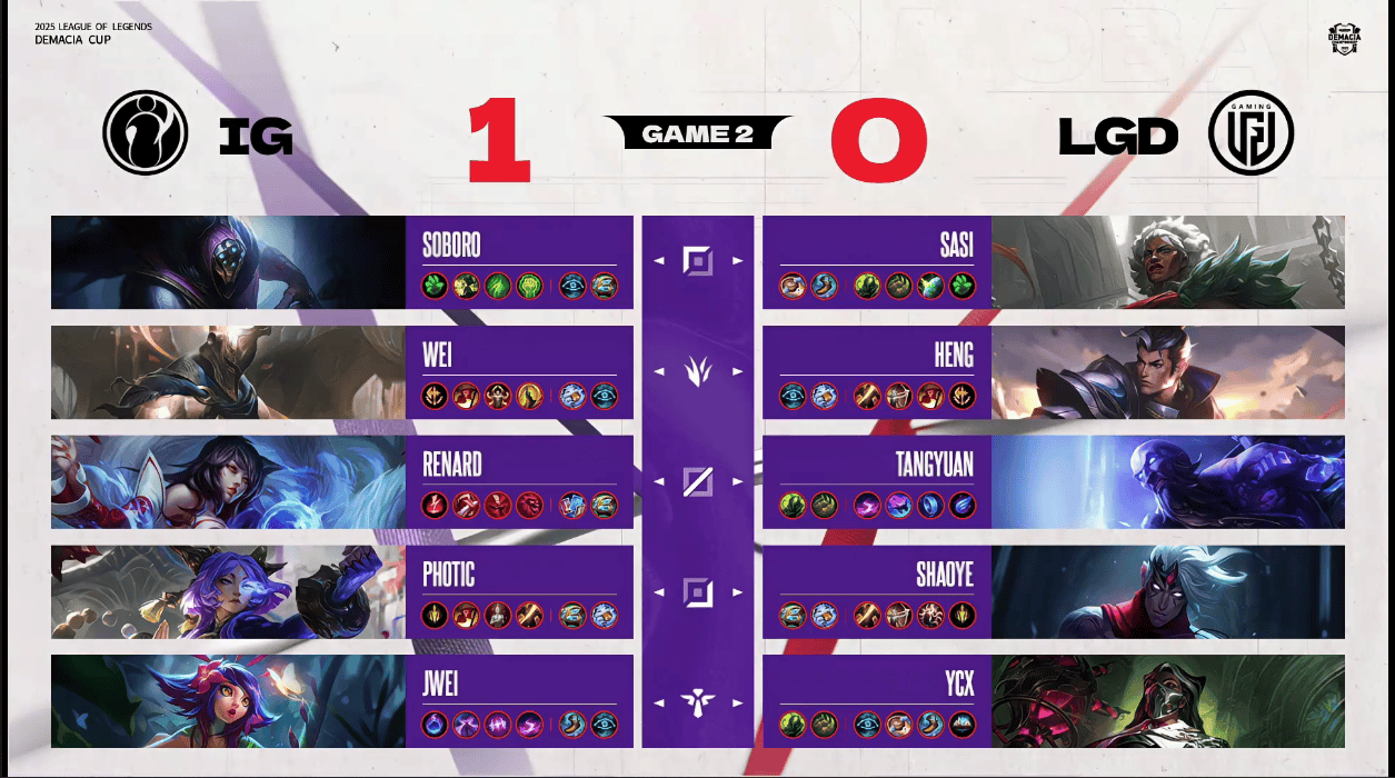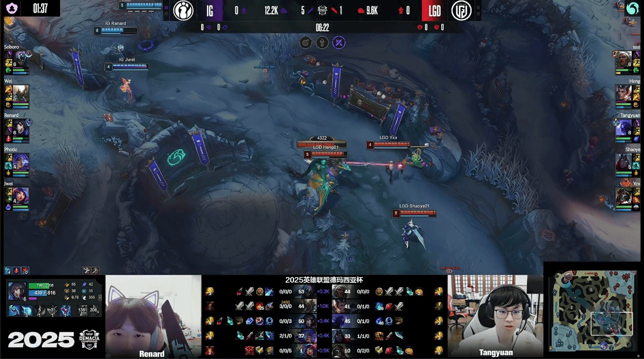 虎扑12月22日讯GAME2:IG蓝色方;LGD红色方