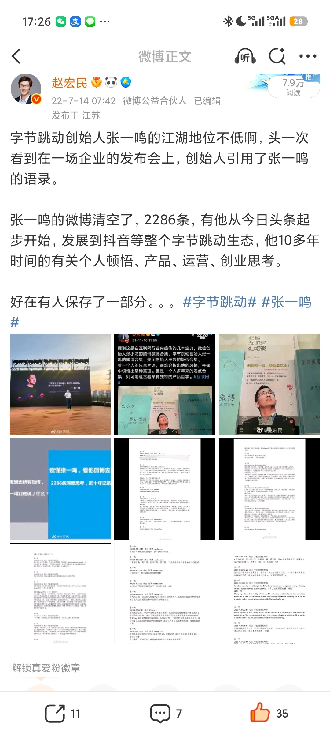 判断一个人是不是真大佬,就看业内人士是不是经常引用他的话。今天我又听到一个创始人引用字节跳动张一鸣的名言——如果一件事在逻辑上是成立的,那么就应该想办法去实现他。这是第二次我听到科技企业创始人引用张一鸣的名言,上一次是2022年在常州。#张一鸣# 上海