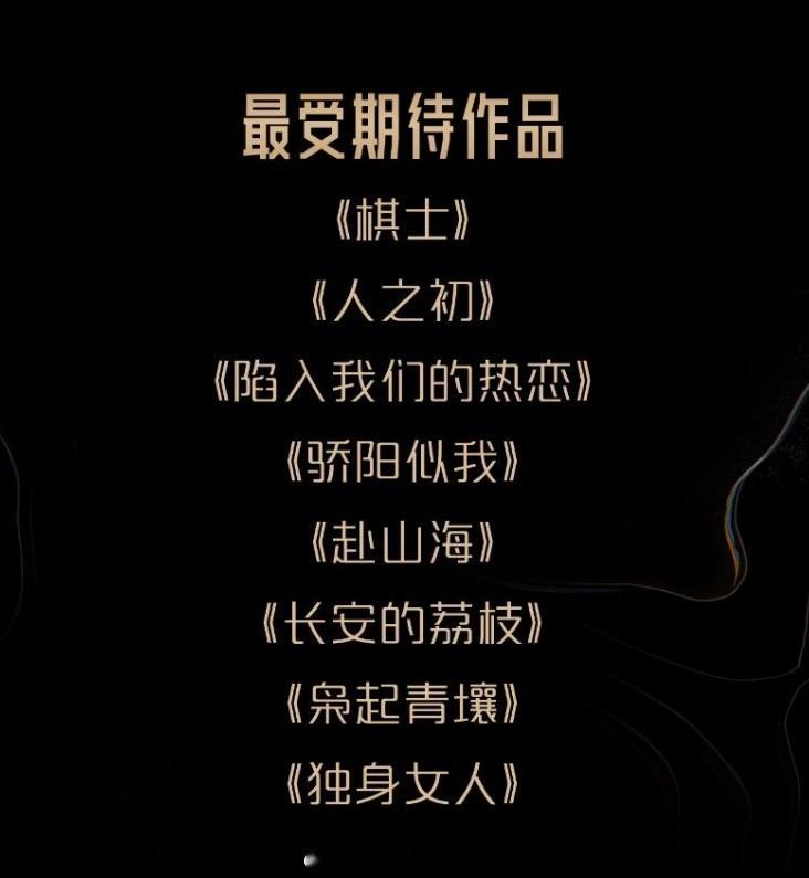 图1是今年星光大赏公布的明年最受期待电视剧。图2是去年公布的2025最受期待电视