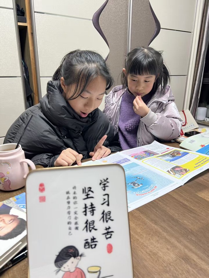 陈先生说,他们家还有一大爱好,就是看报纸。都市快报看了有十年了。他和妻子都有一个习惯,每天下班进入家门,第一件事就是将手机拿出,放在门口的一个袋子里。他们商定,为了带动孩子爱上阅读,他们在家不翻阅手机(手机来电可以接)。两个娃儿在学习的时候,夫妻俩就拿出报纸翻阅,有时候连广告都不放过。孩子们在家,不看手机,也不看电视,空余的时间,也学着大人的样子翻看报纸。因为电子产品用得少,姐妹俩至今都不近视。