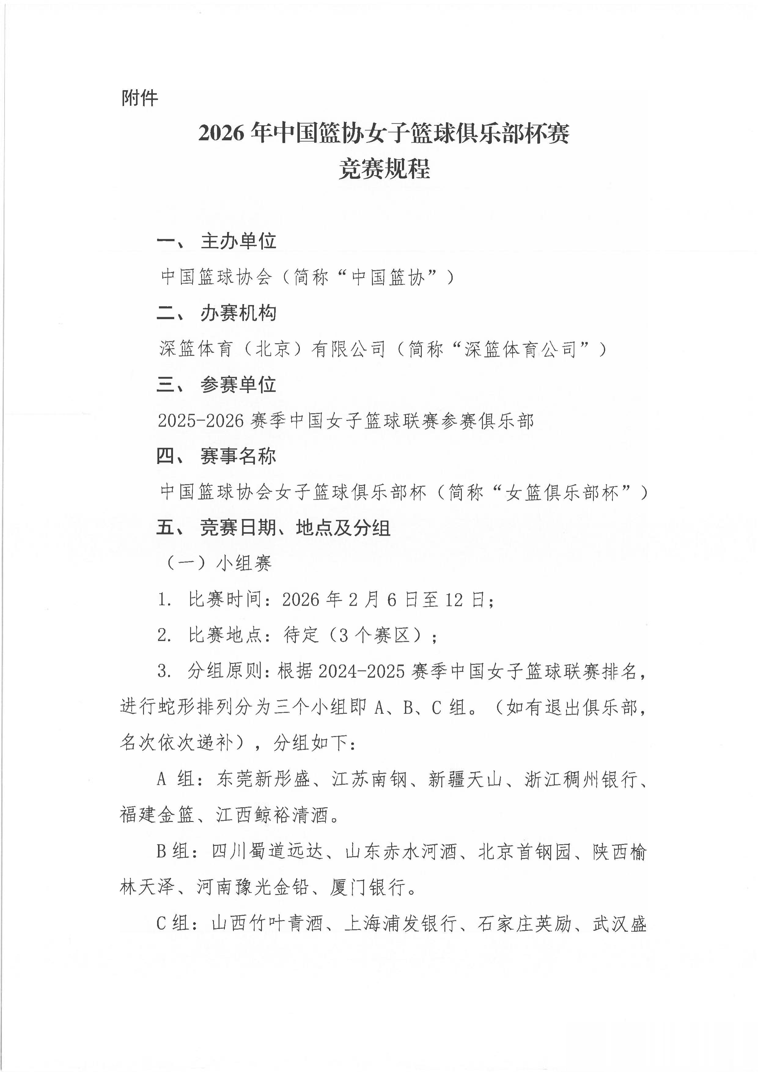 "[首届WCBA俱乐部杯竞赛规程发布]日前,中国篮协正式印发2026年中国篮协女子篮球俱乐部杯的竞赛规程,除具体赛区待定外,其他核心信息均已披露,主要包括以下几个方面: