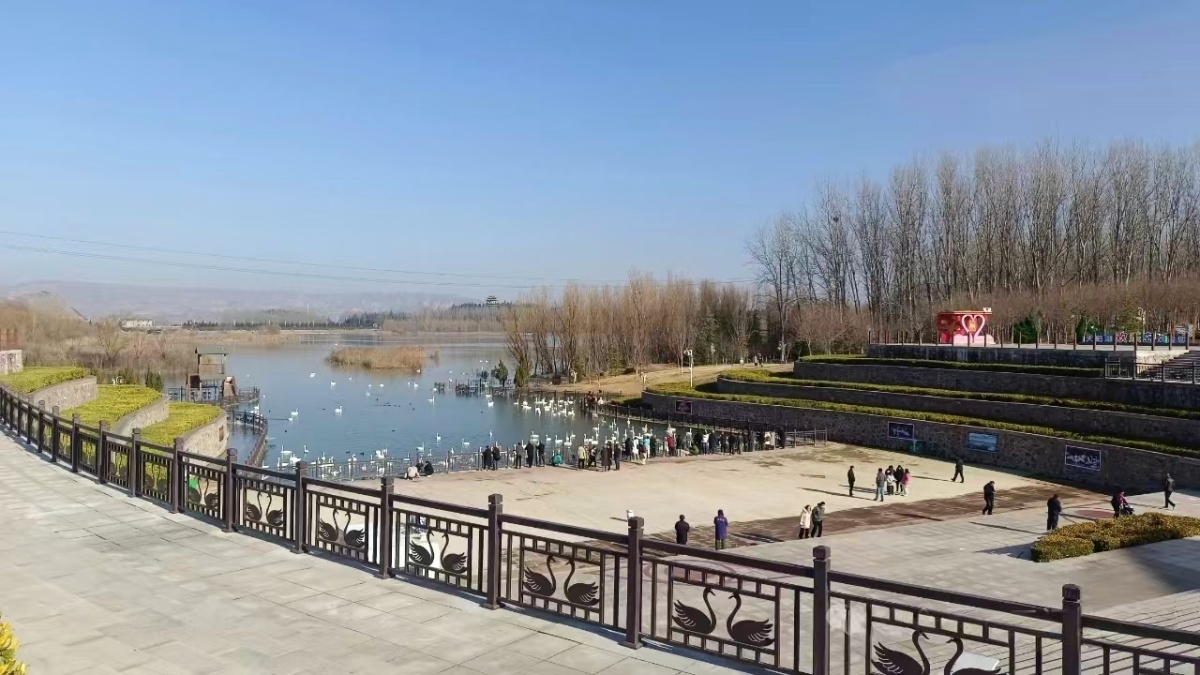 以城管、湿地保护中心、森林公安及志愿者等组成的“护鹅大军”,织就起一张全方位安全防护网。黄河天鹅湖湿地保护中心作为“主力军”,严格落实市领导部署,组建专业巡护队伍实行24小时不间断巡护。每年提前加固刷新园区基础设施,针对性升级硬件设施,全方位提升服务能级;通过优化线路、实施人车分流疏通堵点,拓宽青龙坝道路并开通召公岛社会车辆环线保障通行;同步更新300余块标识牌与公益广告,增设22个标识标牌,安装10个天鹅重点观赏点位示意图,为游客提供清晰指引;建立636个24小时候鸟监控点,配备鸟类声纹智能监测系统;联合科研机构开展天鹅迁徙追踪研究,实现保护工作从“经验型”向“数据驱动型”转变。