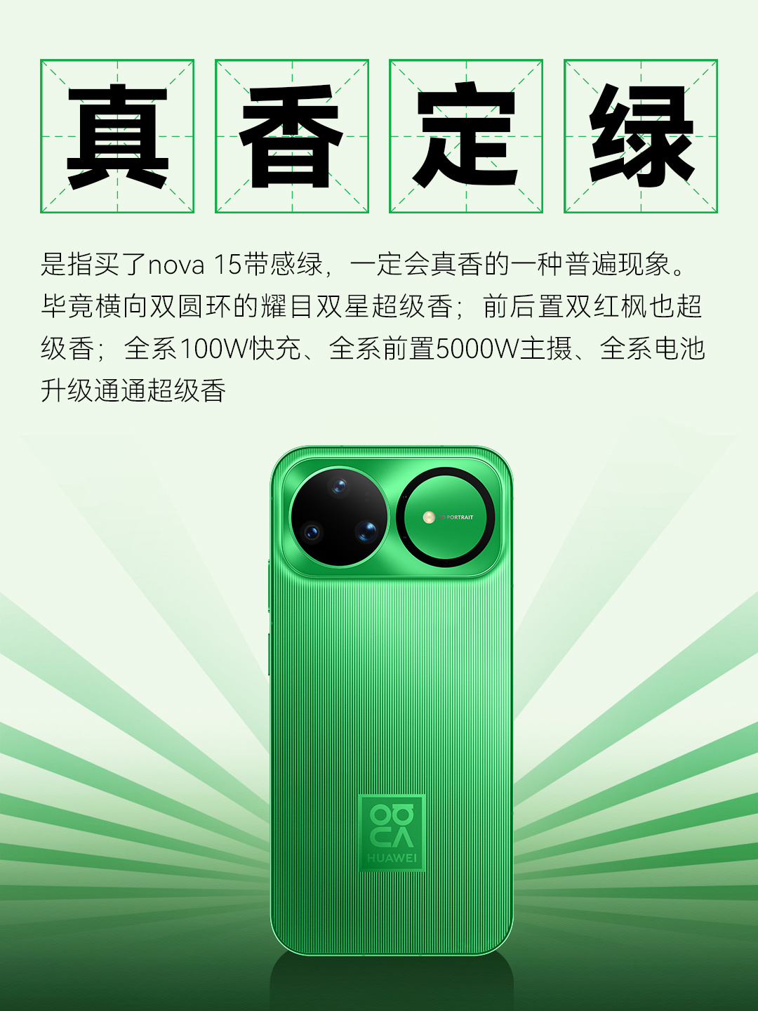 华为nova15全系大大大大升级 华为nova 15系列震撼登场!这次全系“含金量”爆表,直接把配置拉满!配置上诚意十足,全系标配前置5000W主摄与100W超级快充,更有红枫影像、无网通信、大容量电池与全系性能芯片全维加持。从影像到续航,从颜值到硬核通信,每一项都是实打实的大升级。只能说,这次全系大跨越,超级nova真的超级香!你最心动哪项升级?来评论区聊聊!