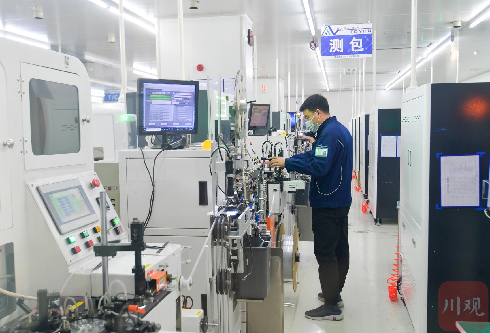 近日,在通江县新能源新材料产业园内的通友微电(四川)有限公司生产车间,工人们坐在质检台前,通过显微镜对绕线完成的磁芯进行细致检测。据了解,该公司的超微一体成型电感元件月产量可达到3亿颗。